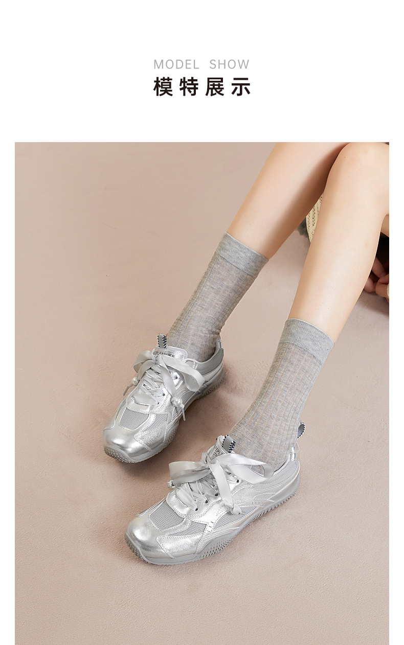 MIO米奥春季休闲板鞋贝壳圆头时尚溶解鞋小众厚底小白鞋女M241586173