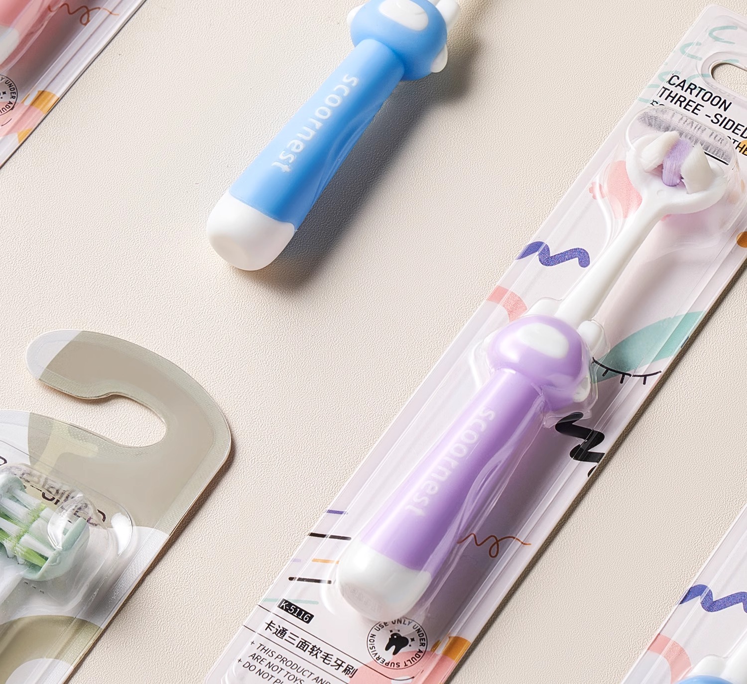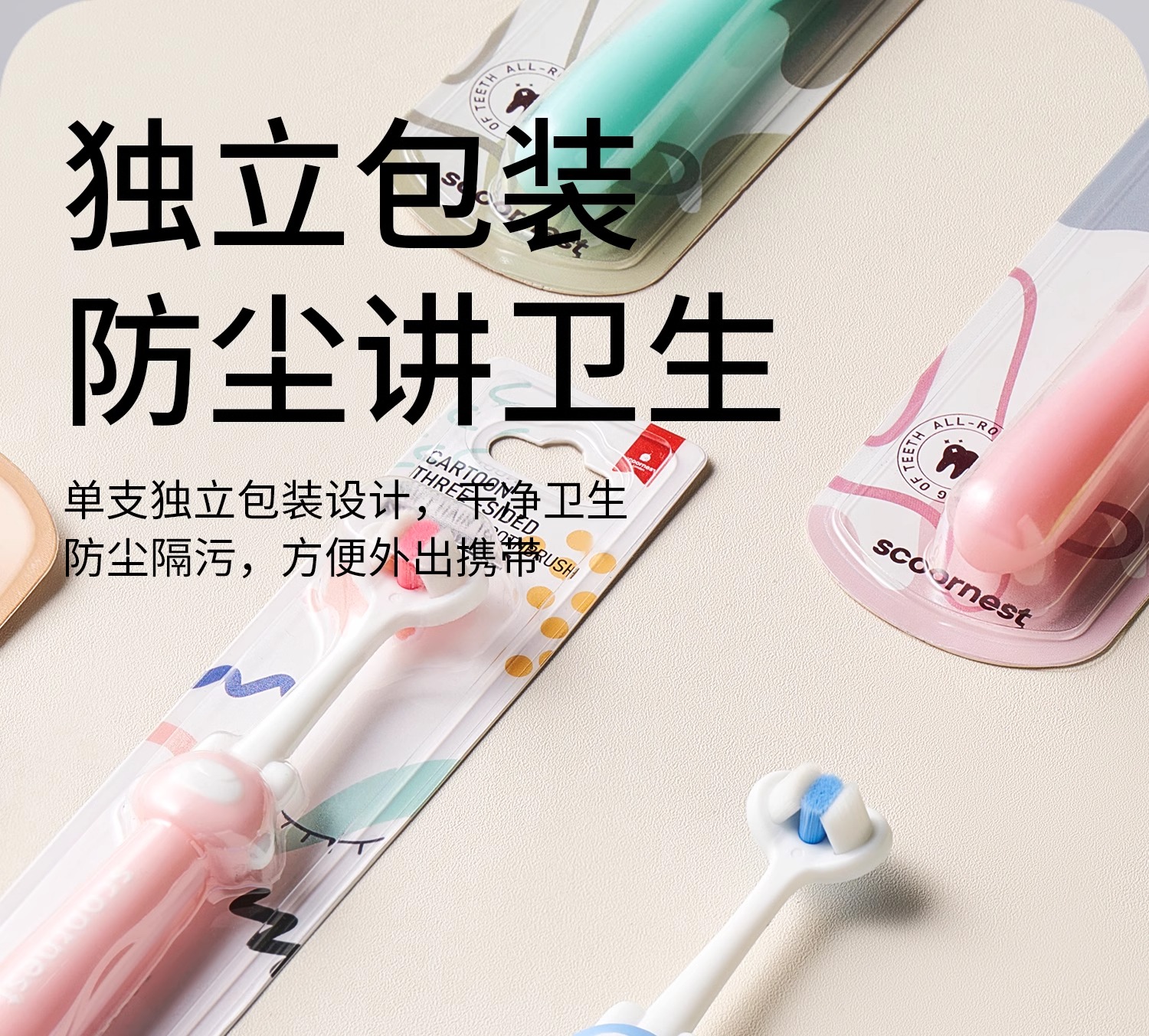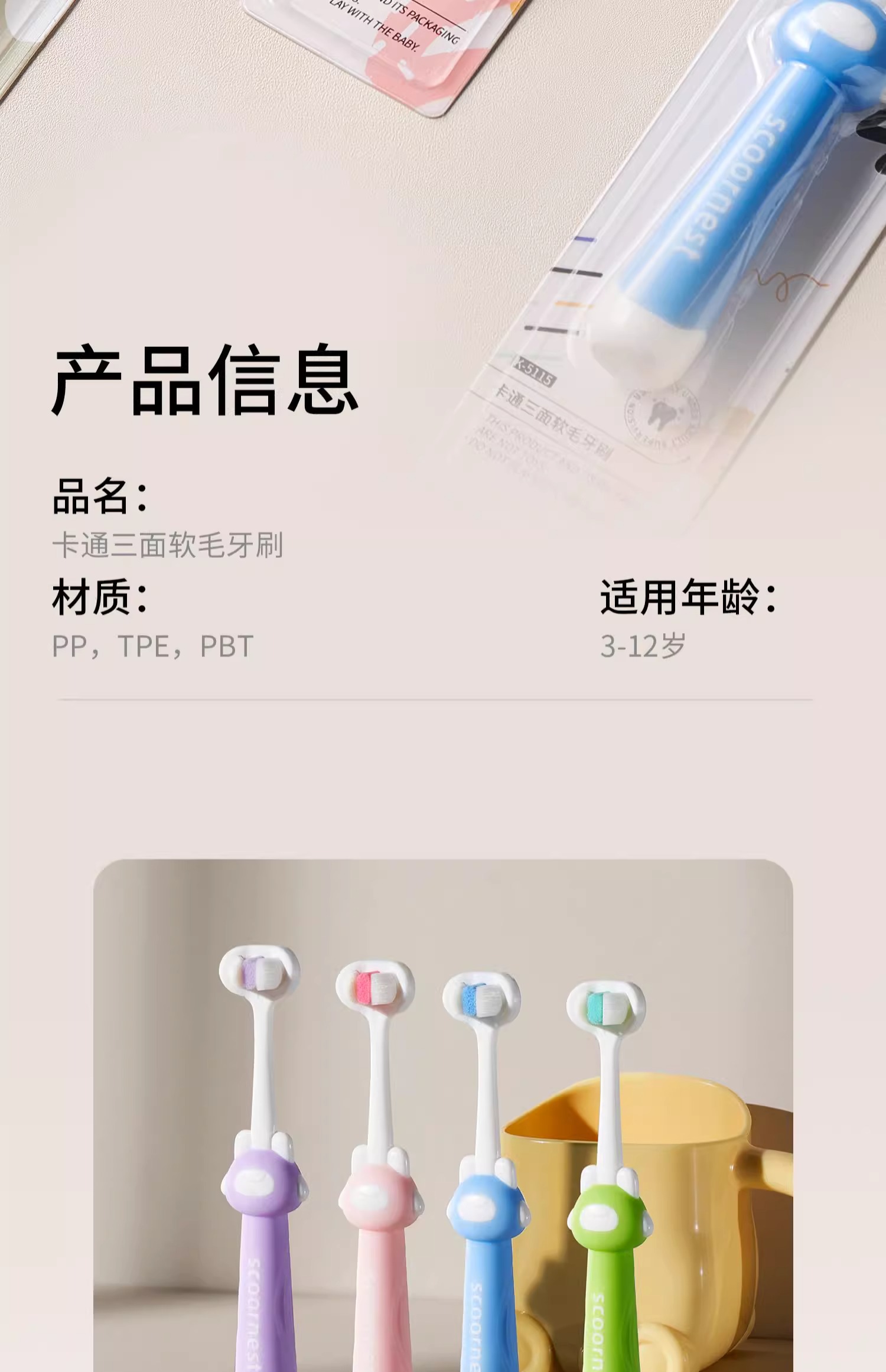 科巢儿童牙刷三面婴儿软毛宝宝0-1-2-3到6一12岁幼儿牙膏u型3d换牙期