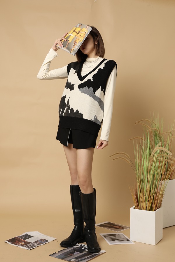 LNNNS 黑白设计感图案针织背心 15282