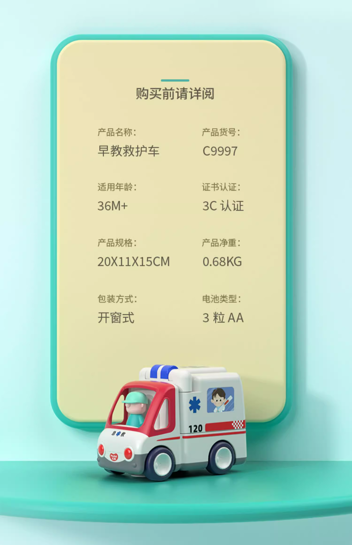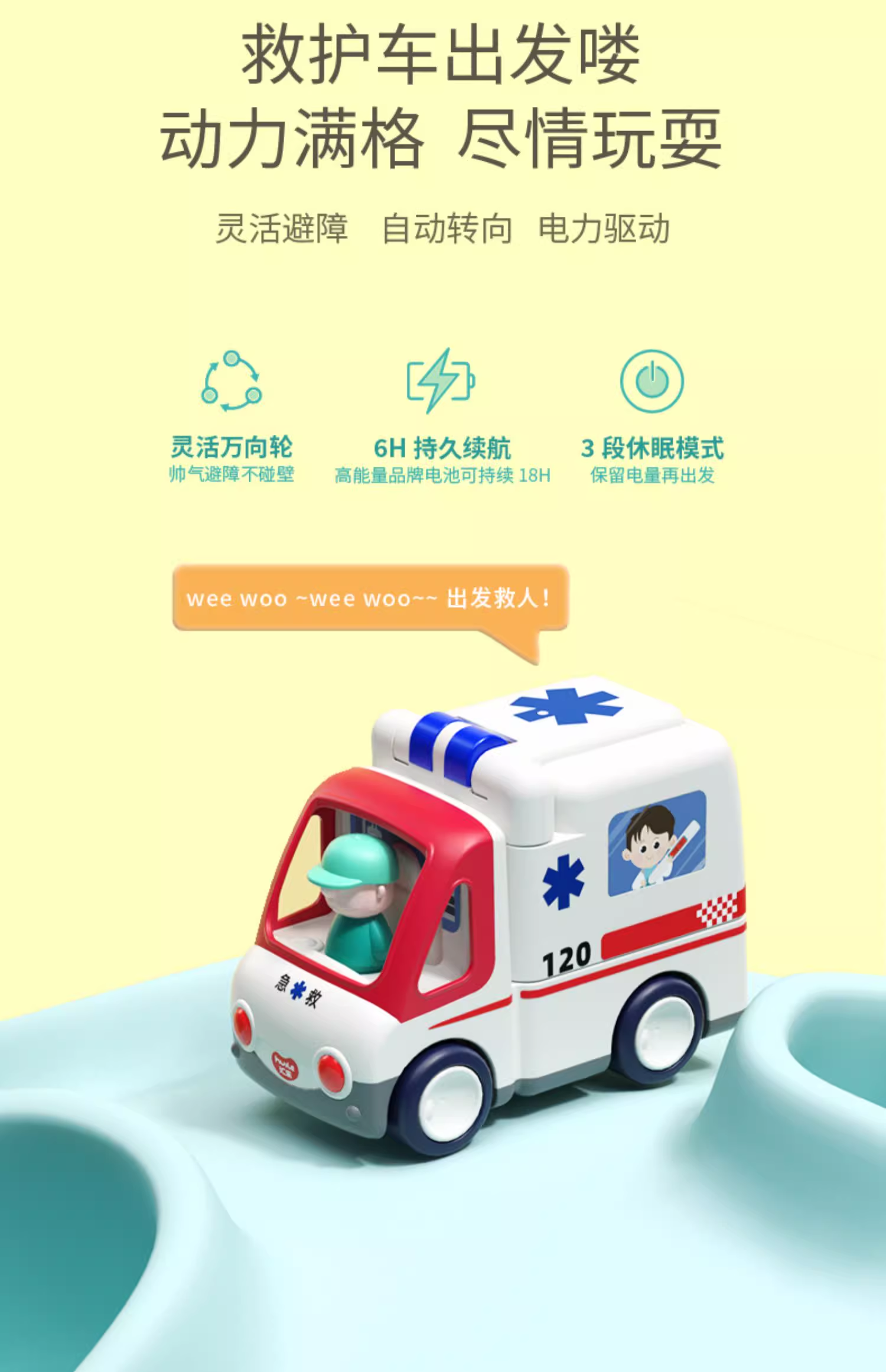 汇乐救护车玩具电动儿童男孩女孩汽车C9997