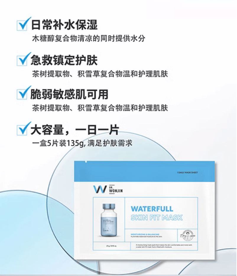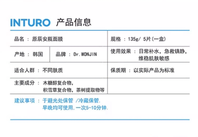 【品名】韩国原辰水盈亲肤安瓶面膜5片/盒