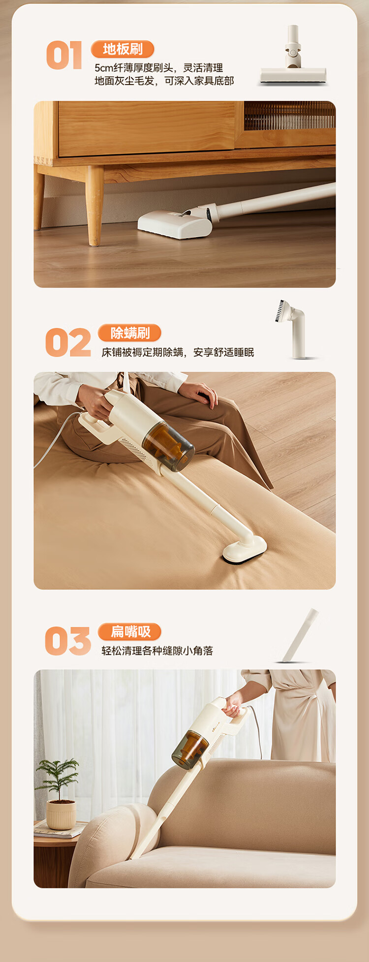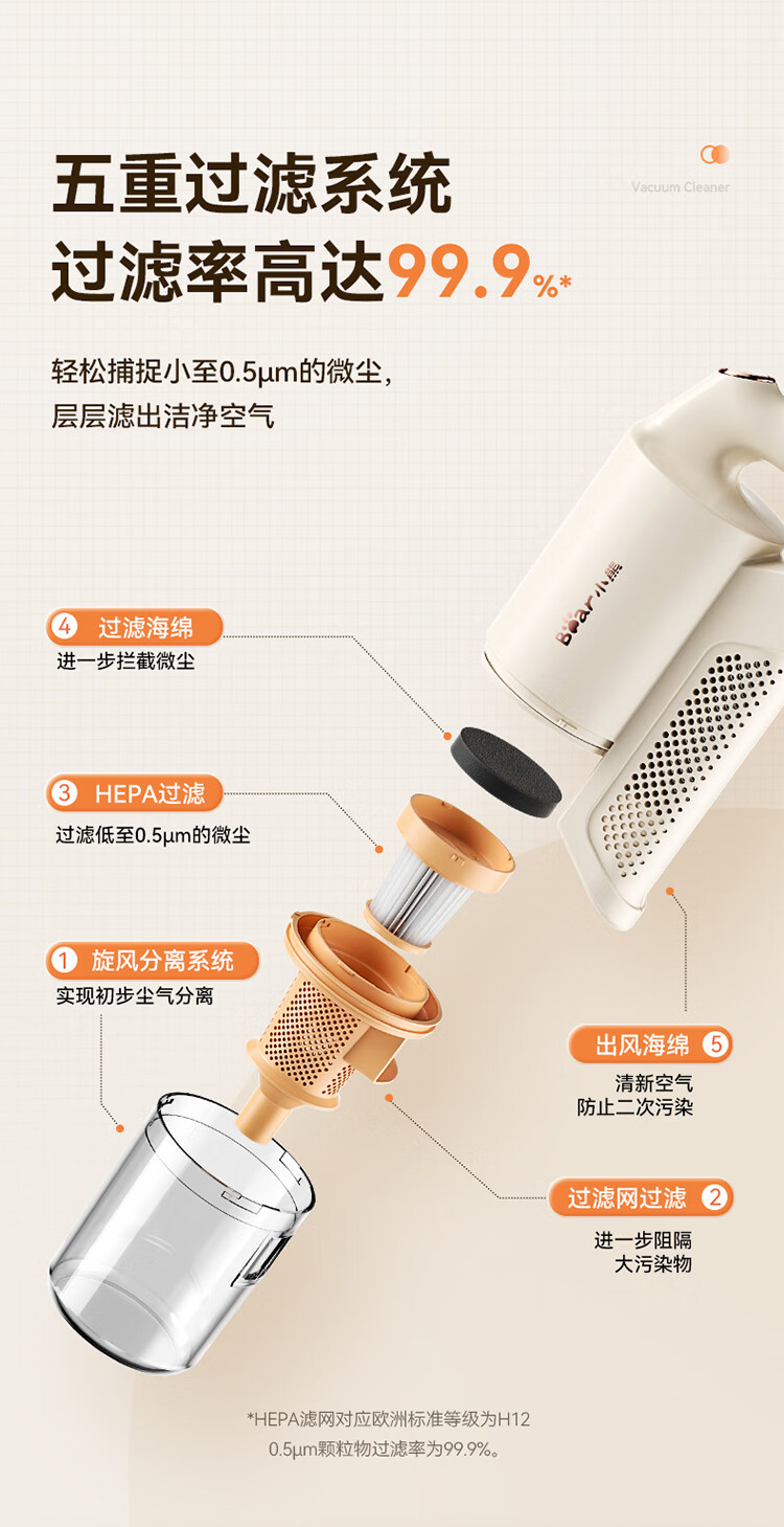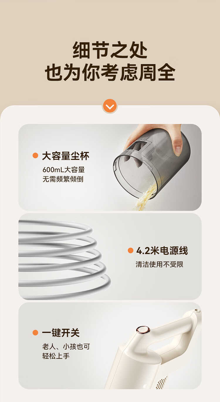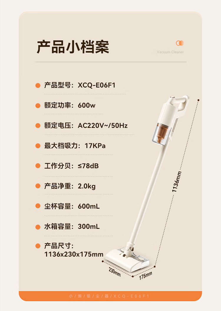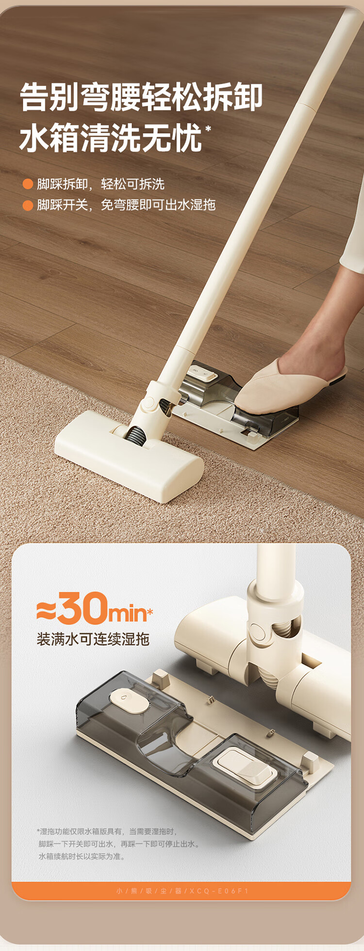 小熊XCQ-E06F1家用手持有线吸拖一体强力除尘机水箱版