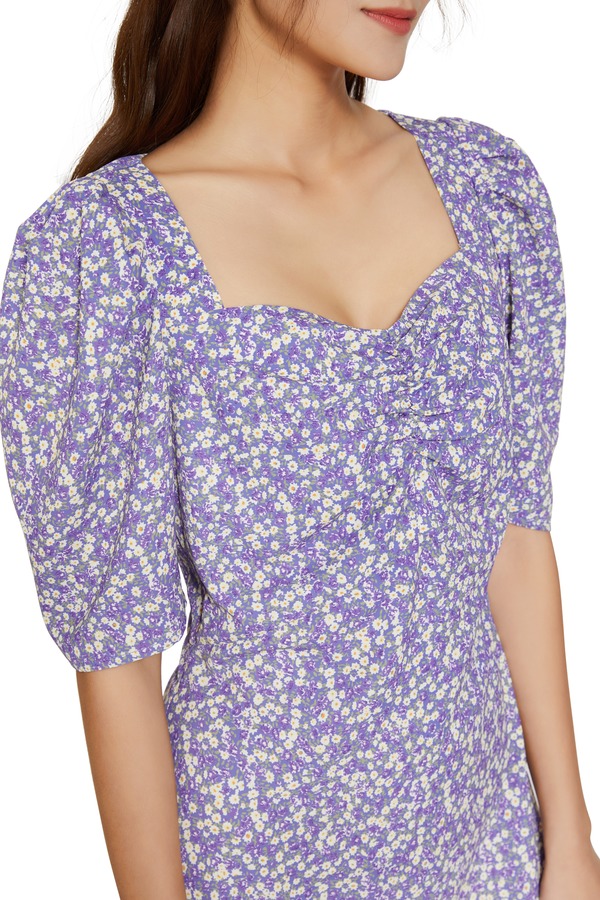 amadella 紫色复古碎花连衣裙 9374