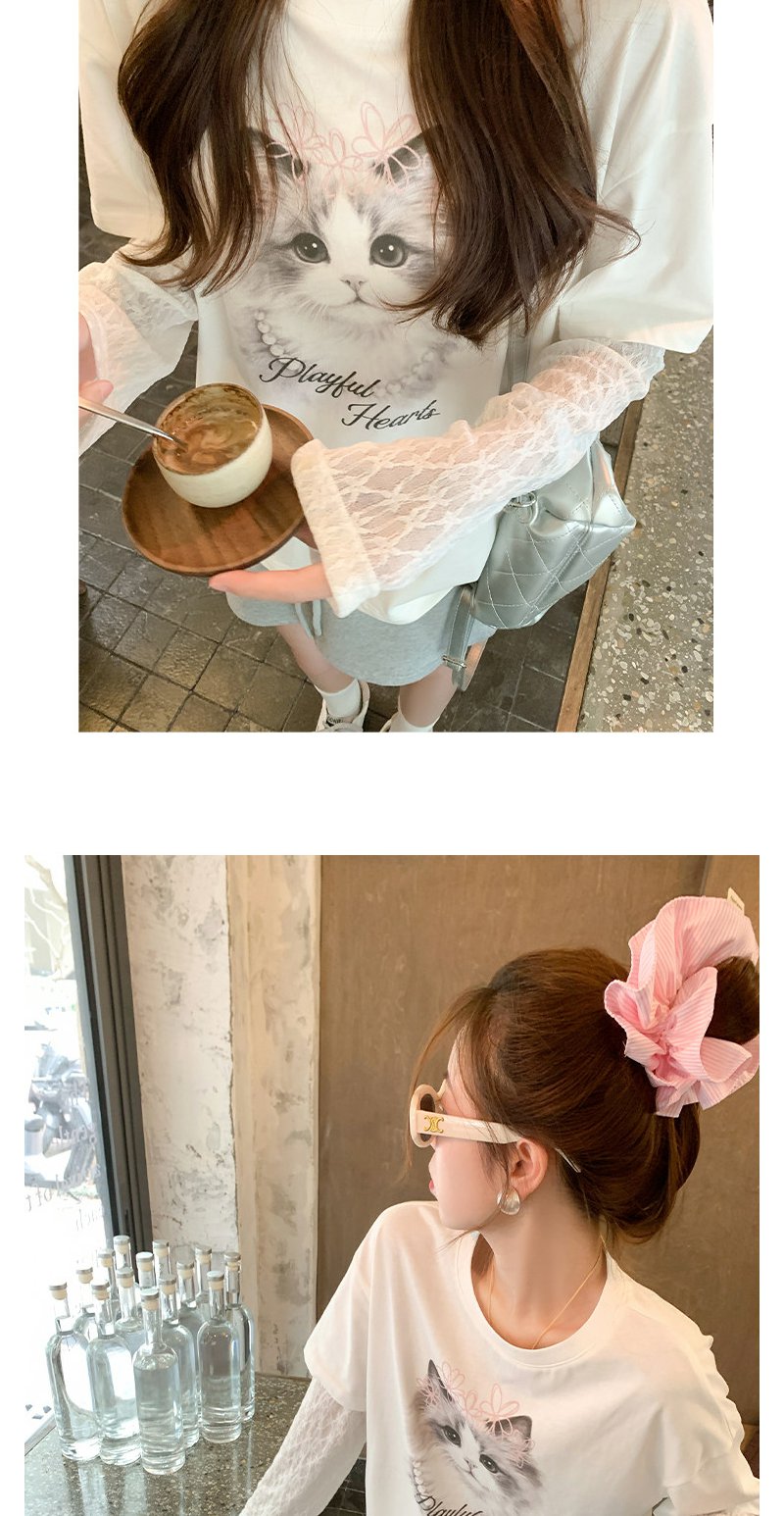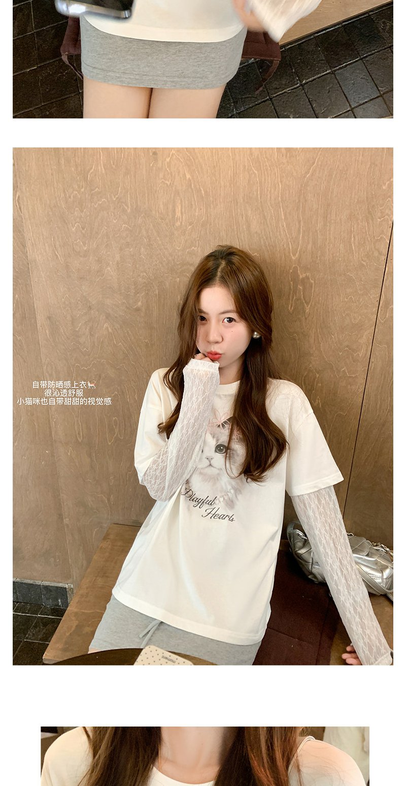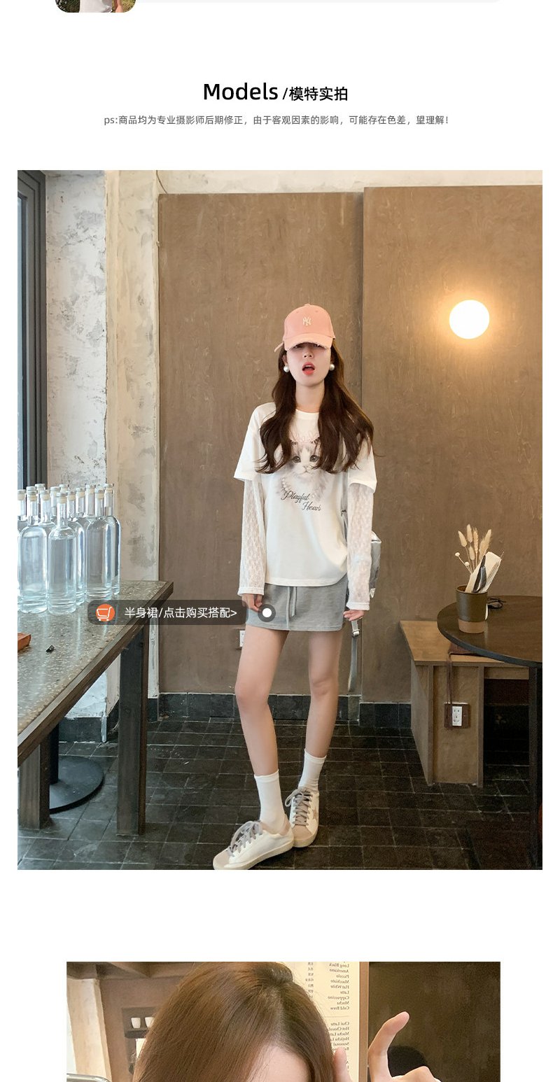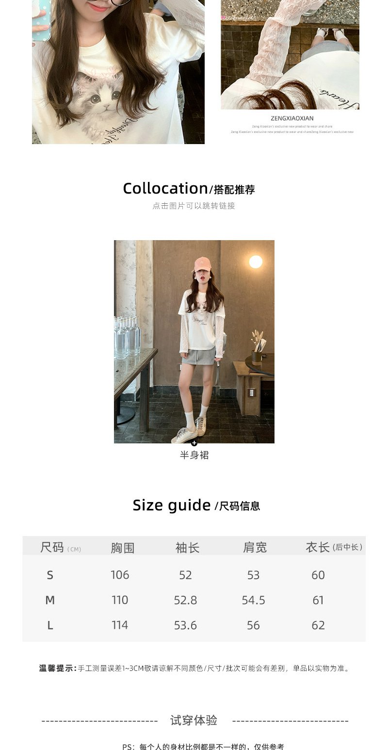 <曾小咸推荐>韩系假两件猫咪印花长袖t恤女