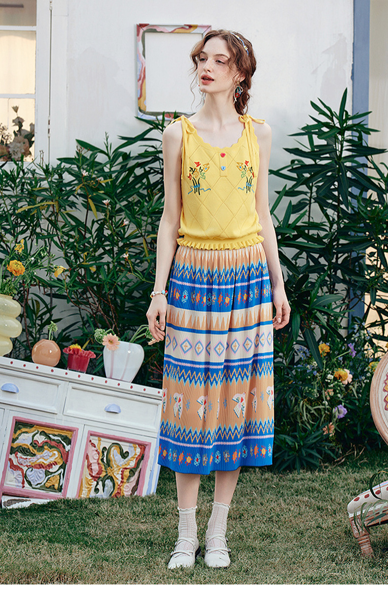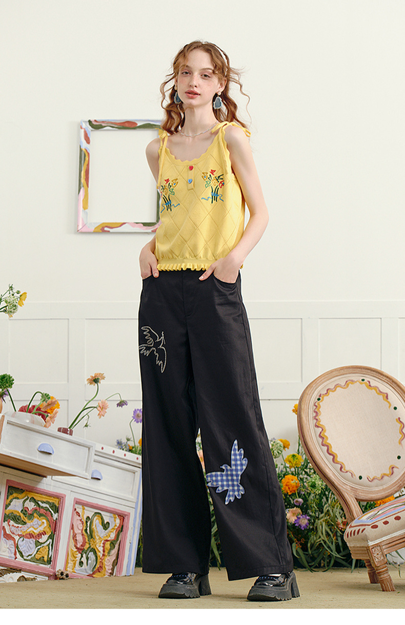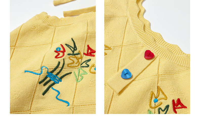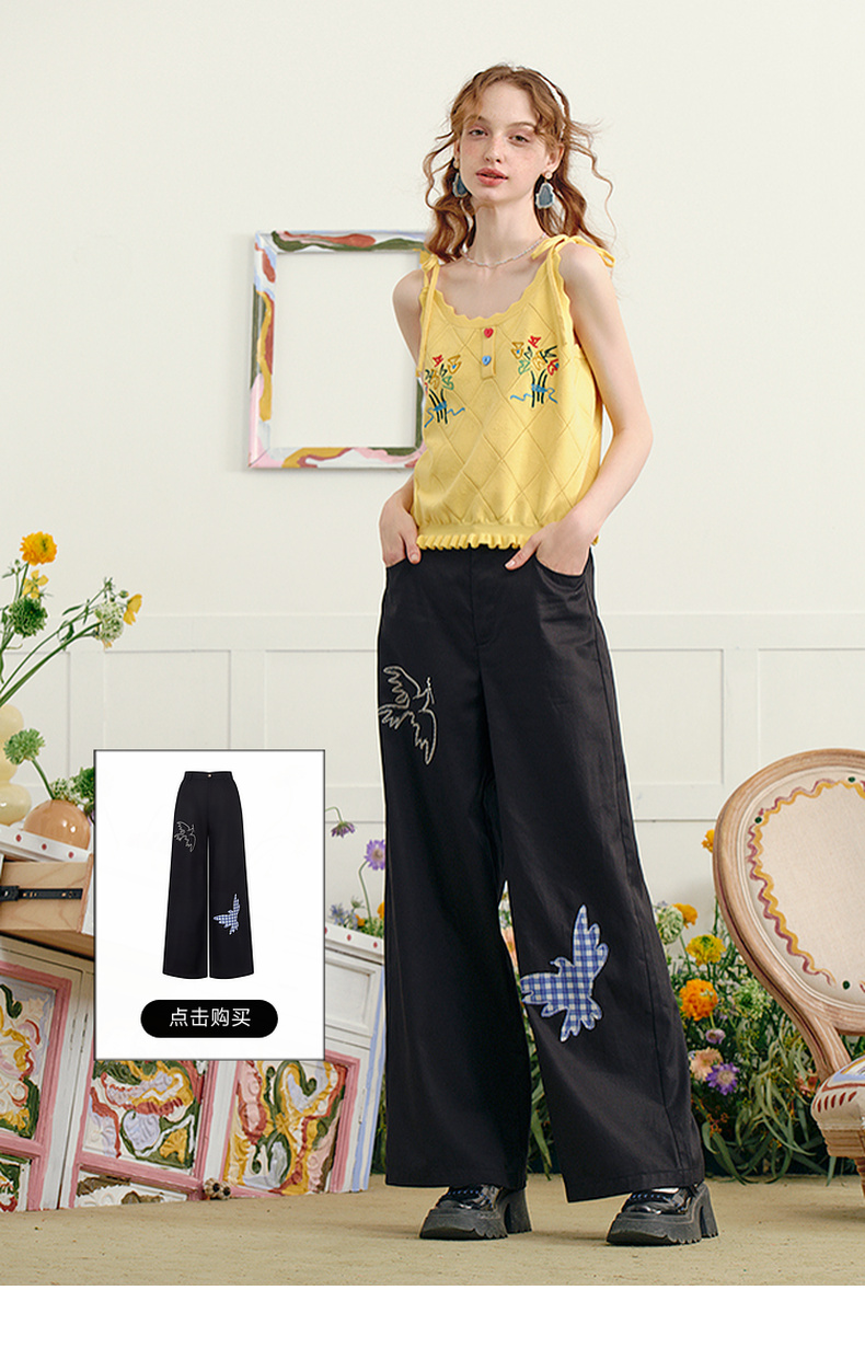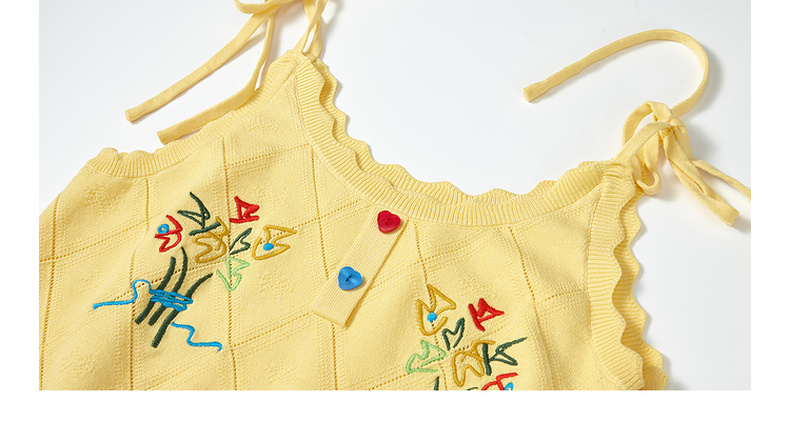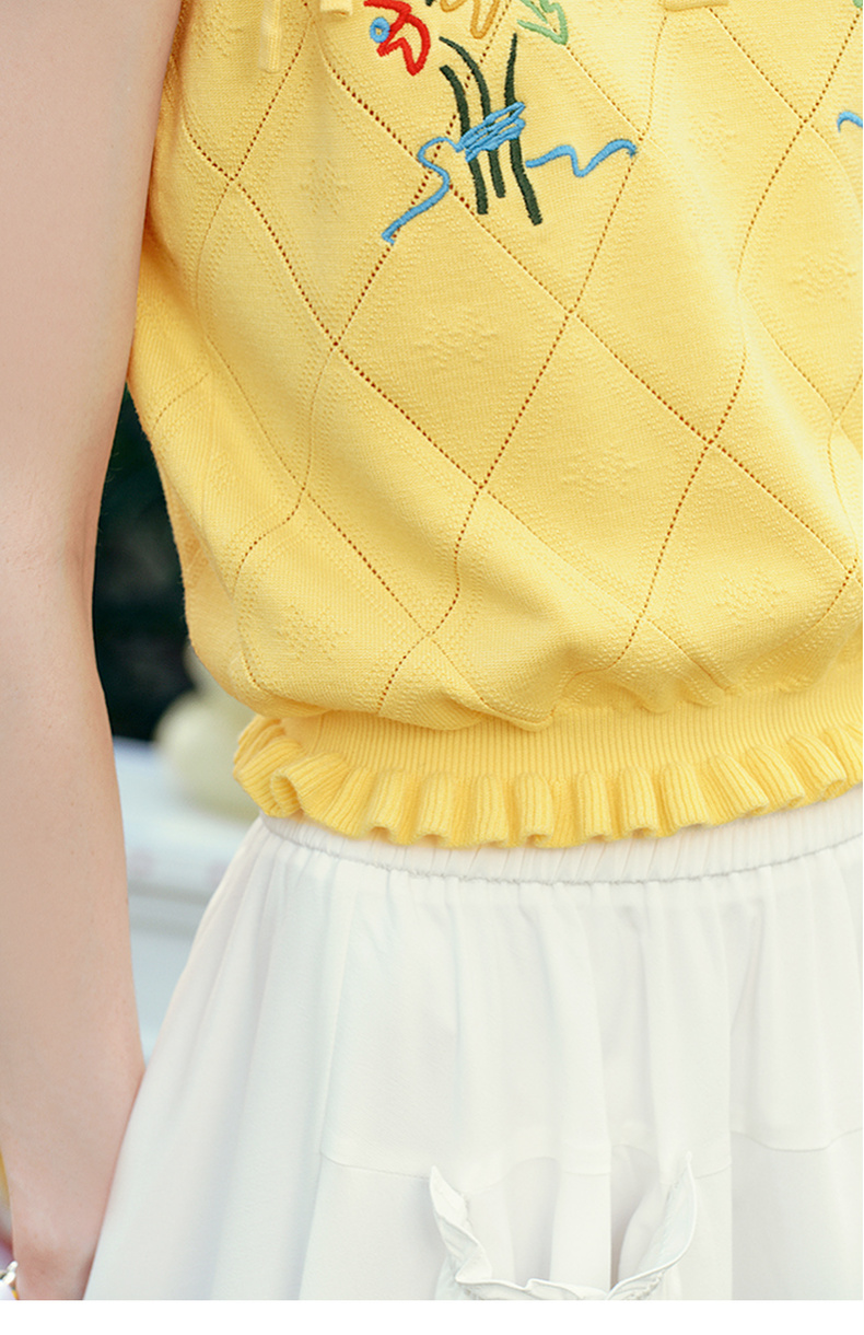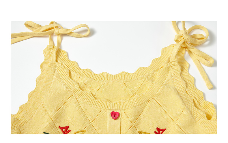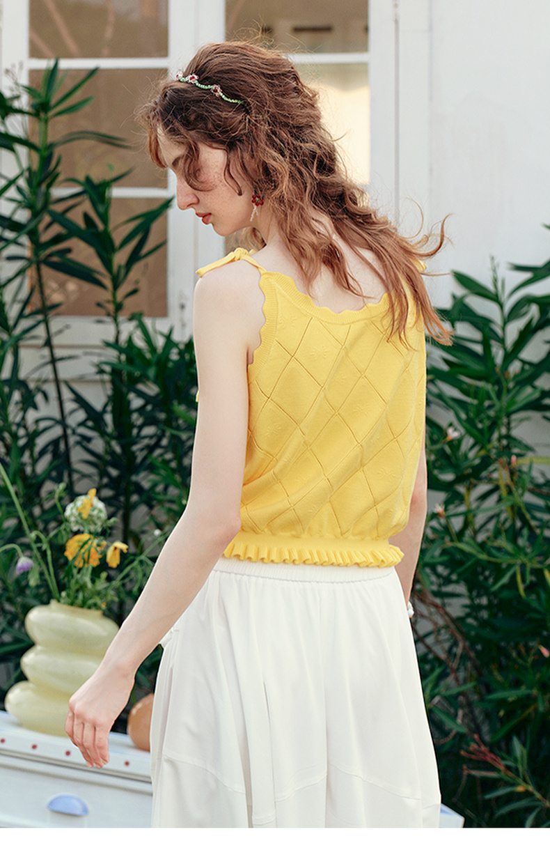 两三事 童谣乐园 2025夏季新款小清新木耳边下摆刺绣吊带针织衫女