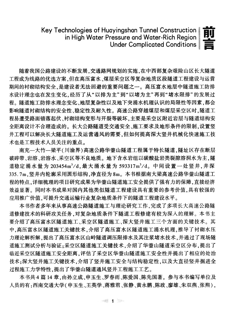 书名:复杂地质条件高压富水华蓥山隧道施工关键技术