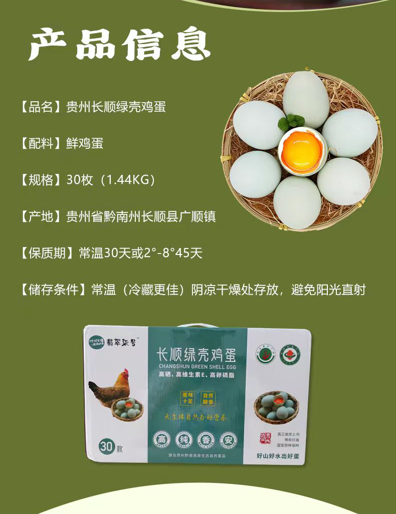 贵州农特产品长顺绿壳蛋鲜鸡蛋30枚/盒