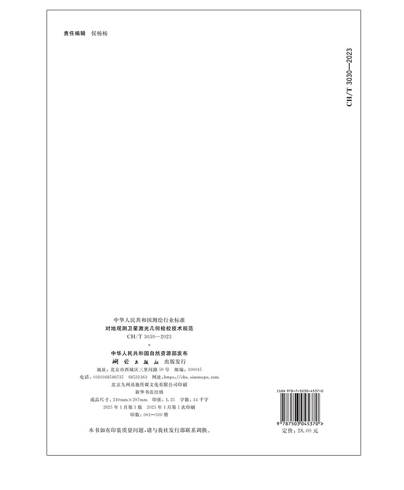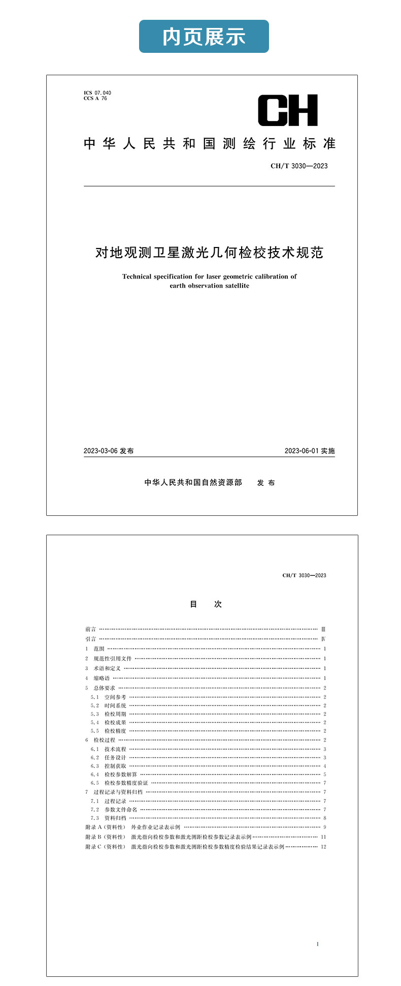 测绘行业标准·对地观测卫星激光几何检校技术规范——CH/T 3030—2023