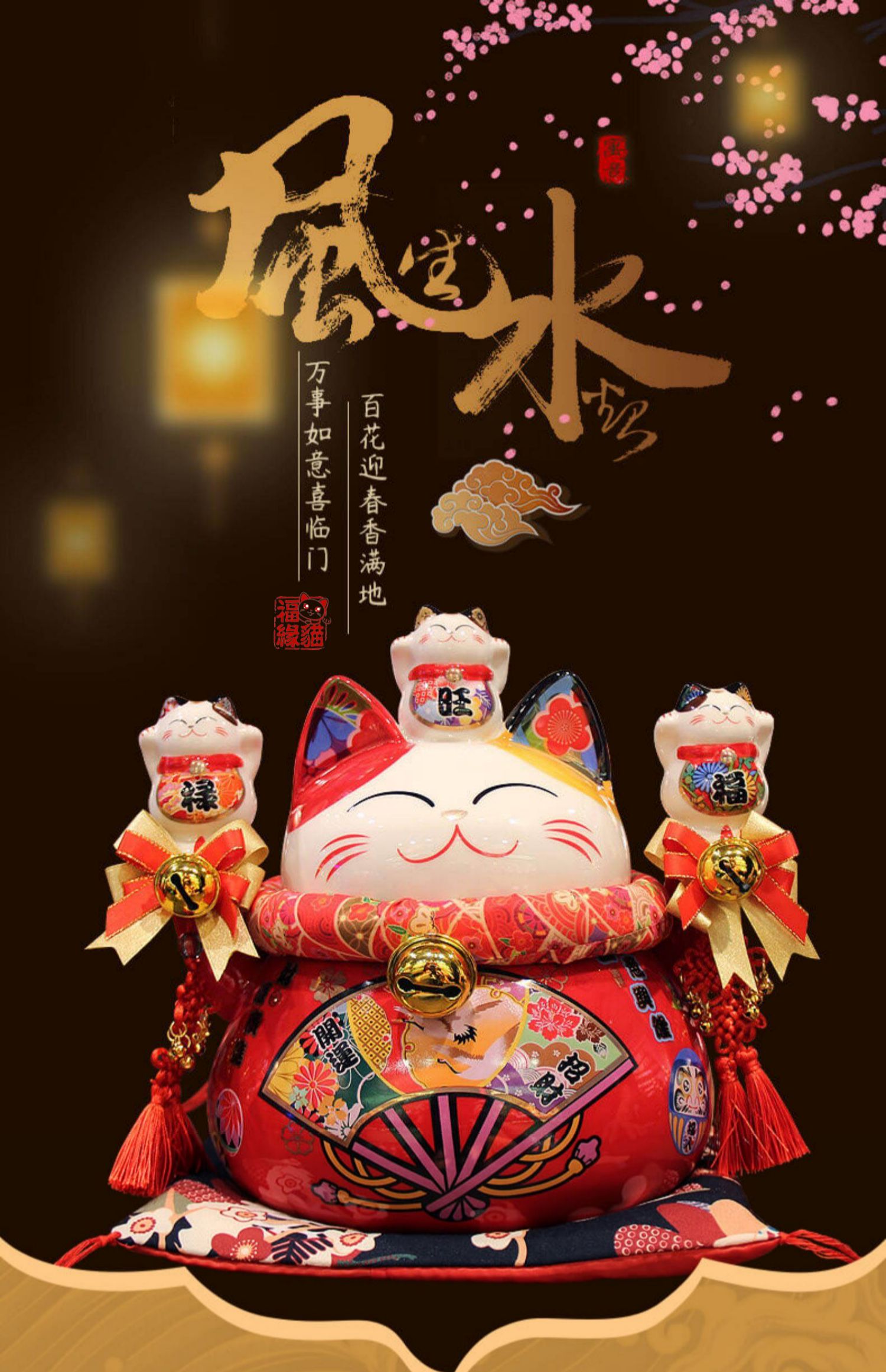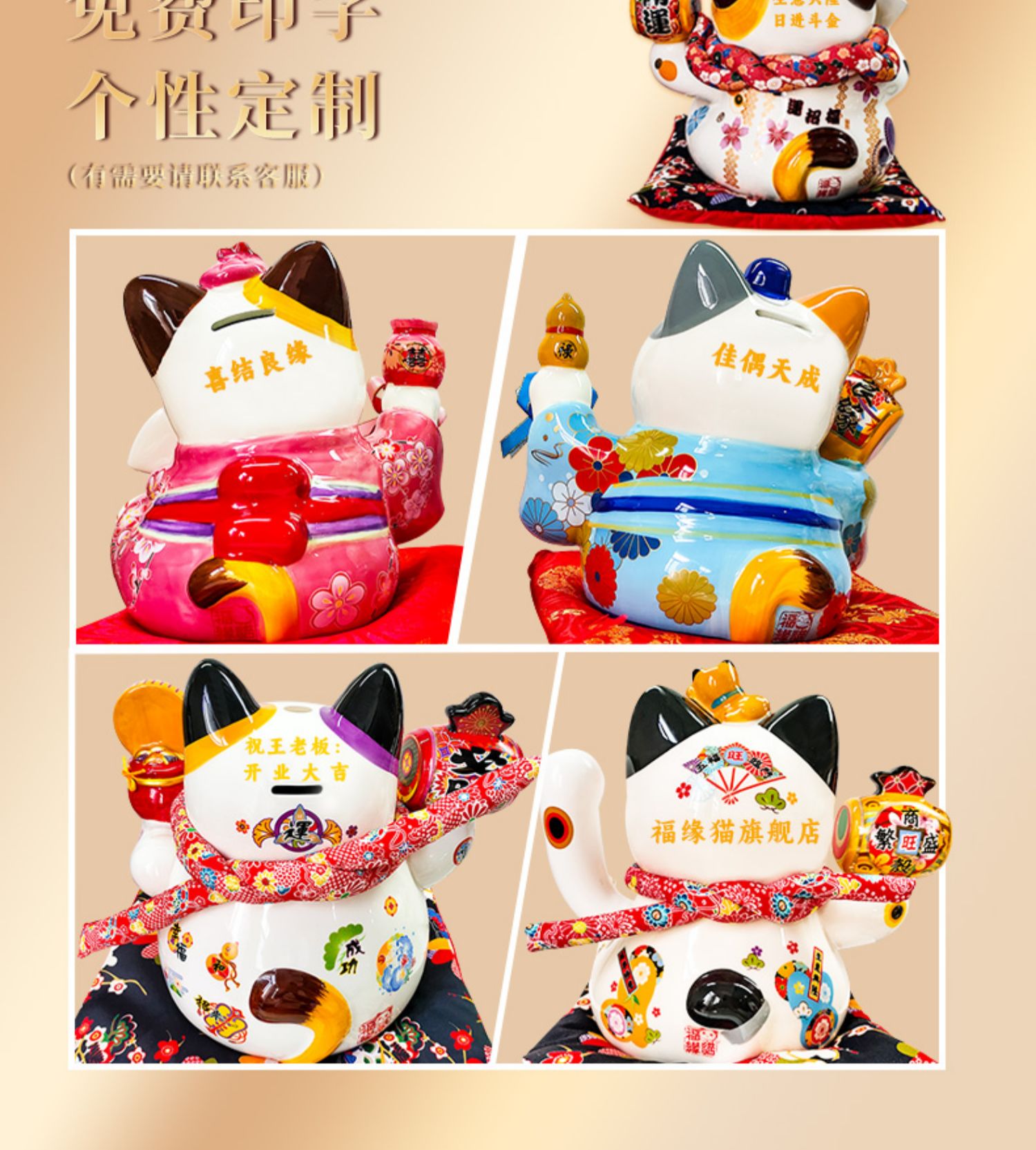 9寸大愿成就招财猫红猫存钱罐23*19*22开业礼送新婚送女士生日礼物
