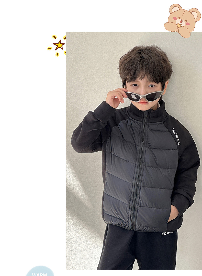 新款男女童装小孩立领加厚保暖羽绒服外套卫衣中大童上衣外套长袖 商品图7