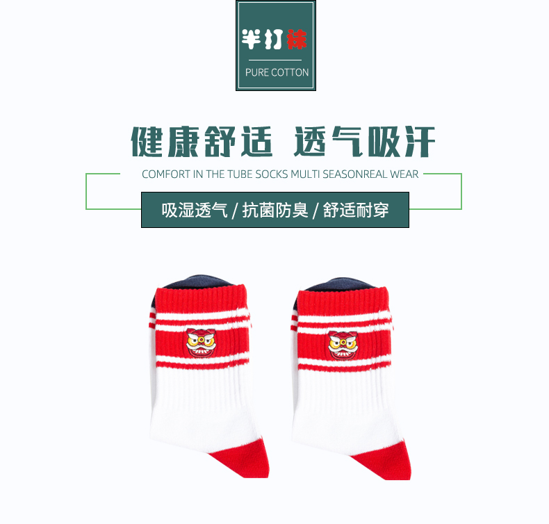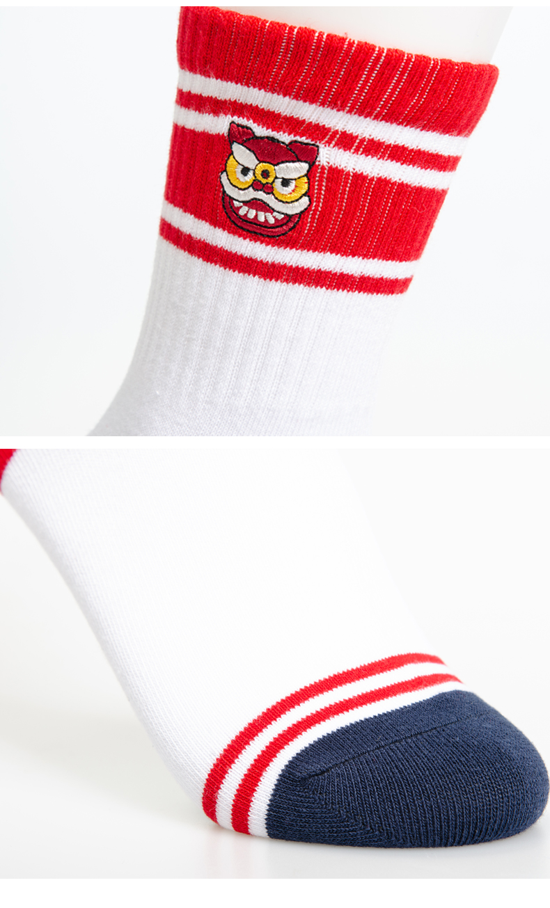 【 6双6折】女 | 女士舞狮刺绣时尚袜【粉色袜卡2双装】【2222212】