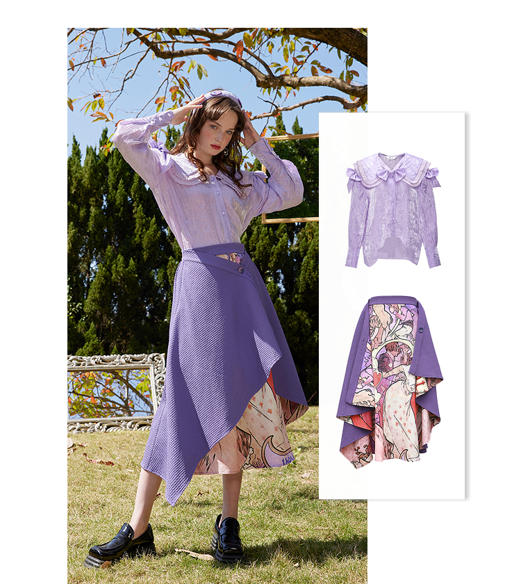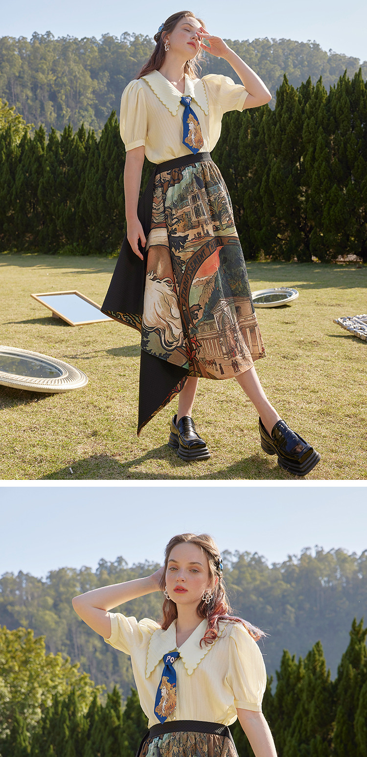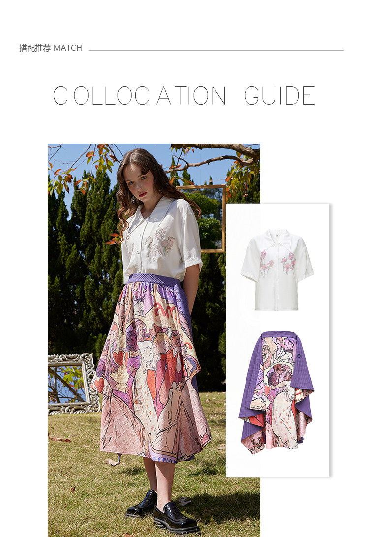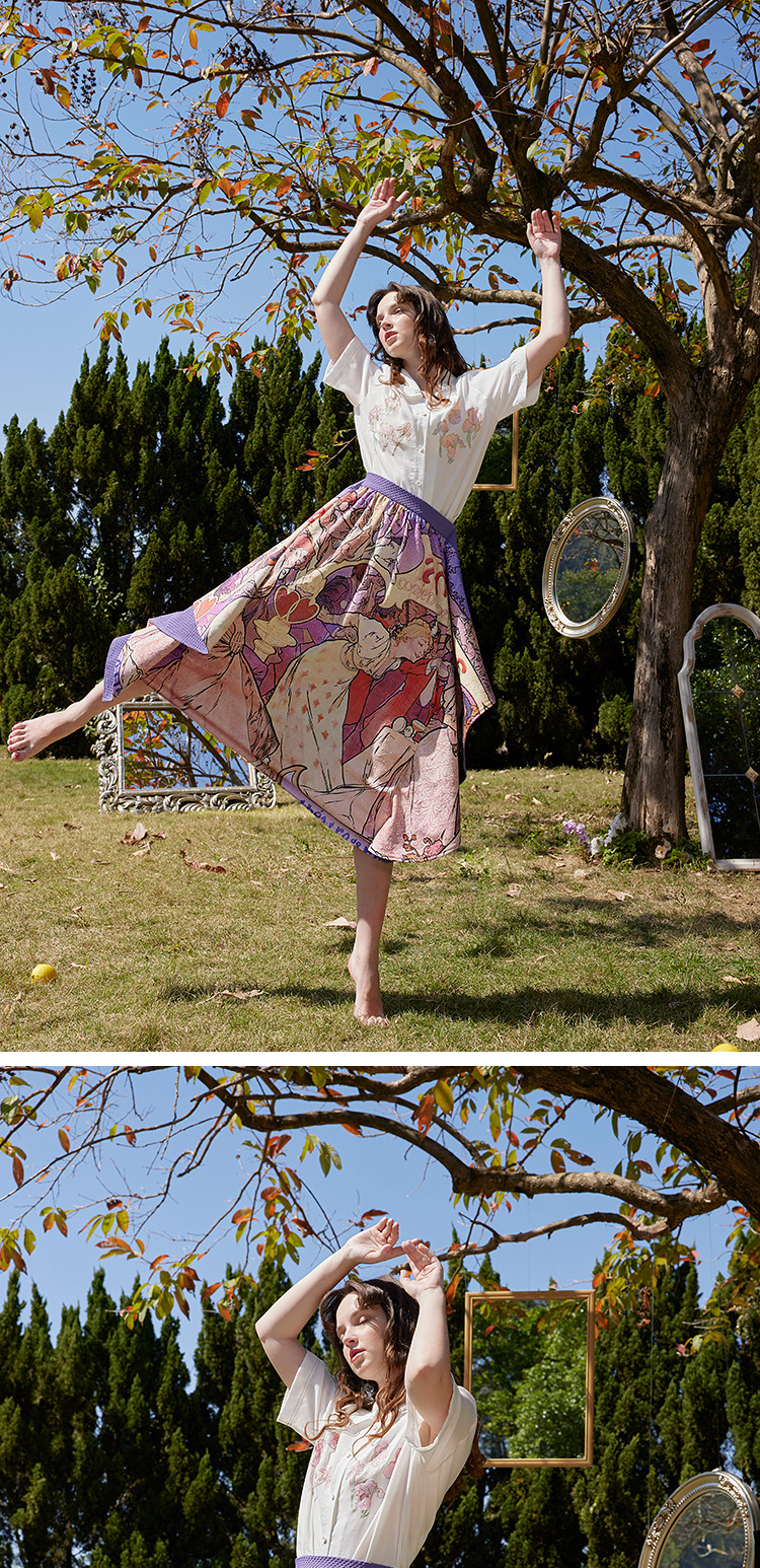 半裙两三事初夏梦 夏季新款复古手绘画印花不规则剪裁高腰半身裙