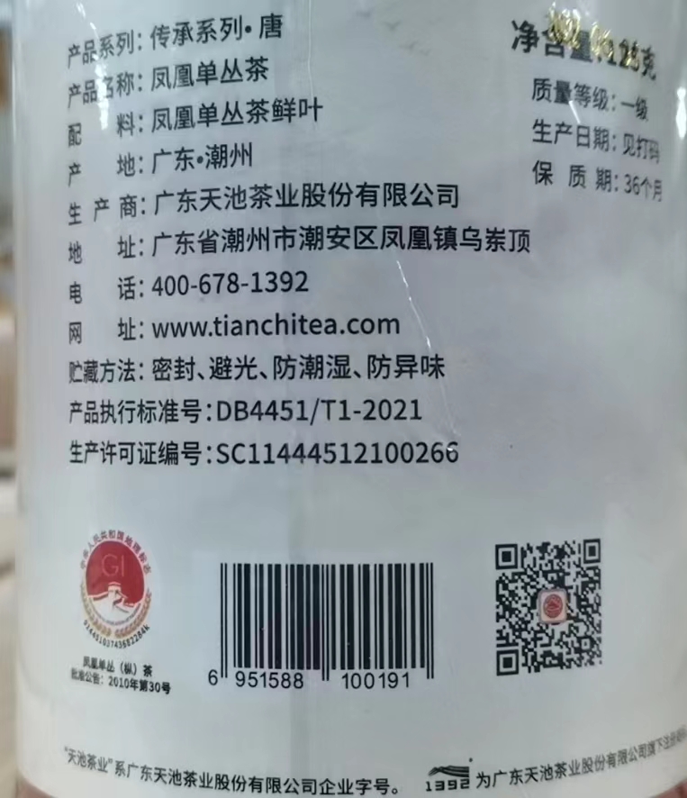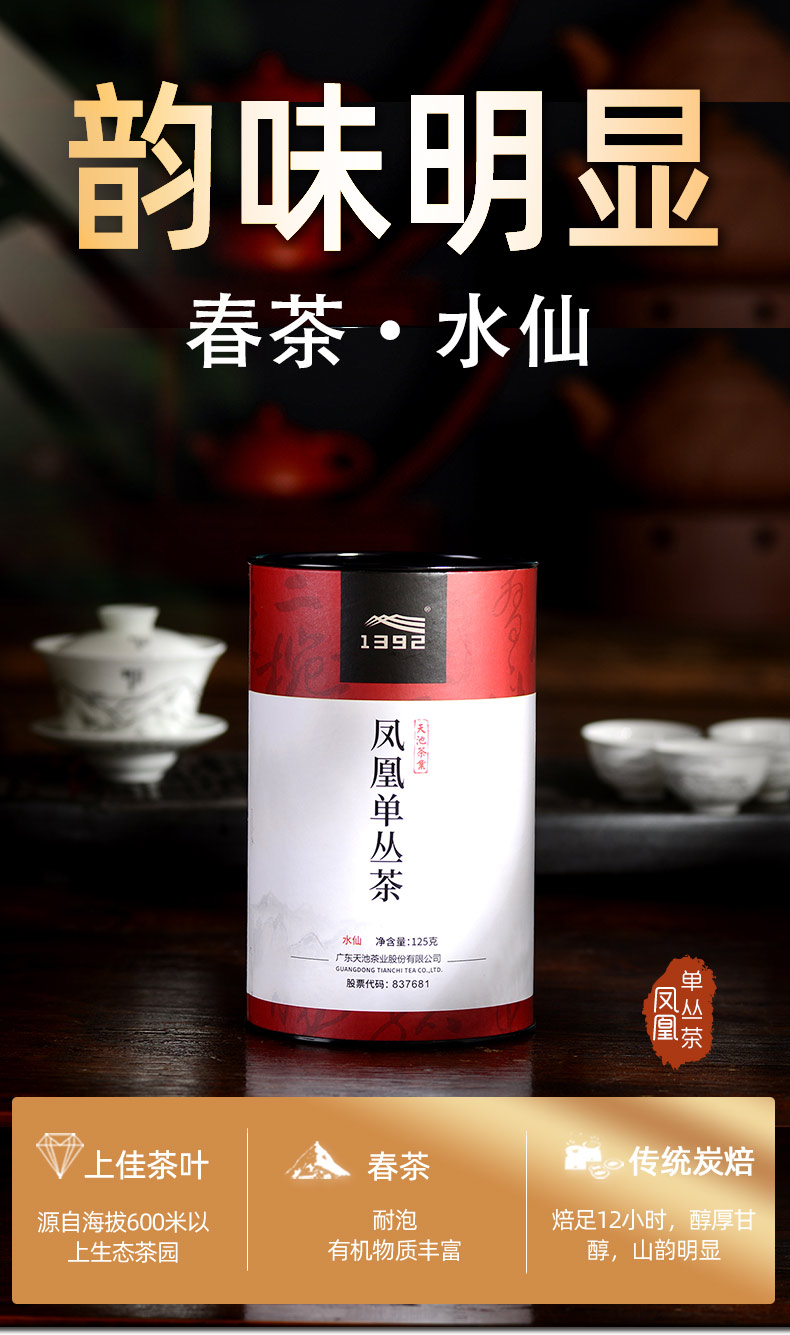 【韵味明显】天池茶业 传承系列 凤凰单丛 2022年水仙 125g/罐(京东天猫同款)