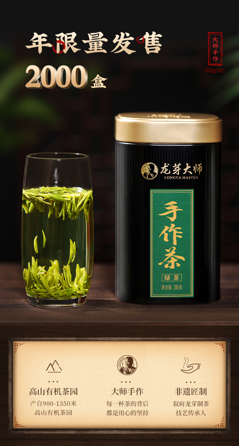 【大师手作限量发售】川茶集团 龙芽非遗大师 手作绿茶 2024年明前新茶 特级高山云雾嫩芽雀舌 50g/罐(京东同款)