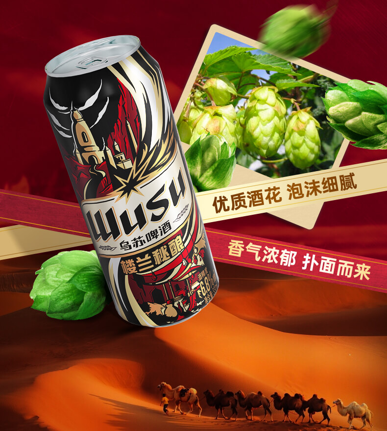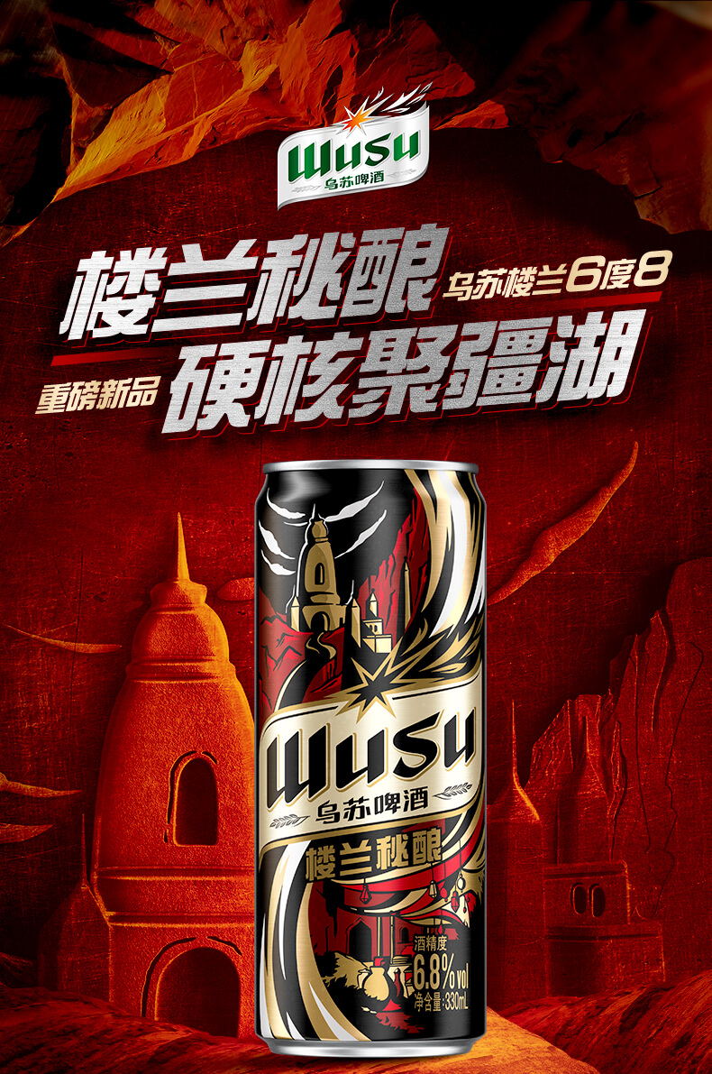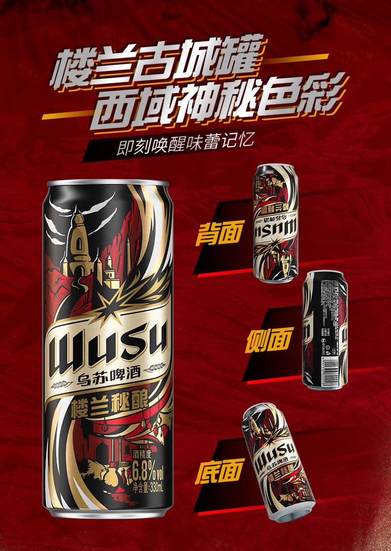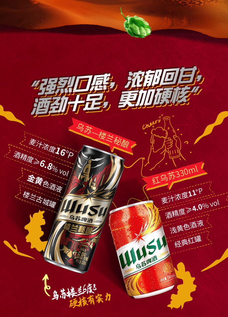 【促销】夺命大红乌苏楼兰新疆烈性啤酒听装整箱330ml*24罐QJH
