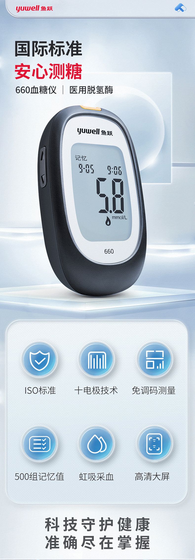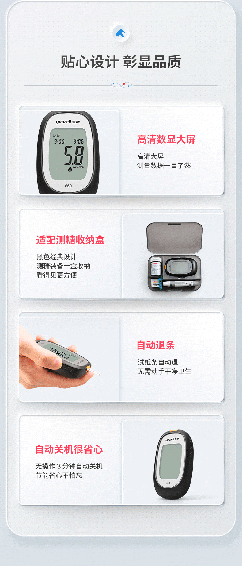 鱼跃血糖仪660型+50片血糖试纸+50针头