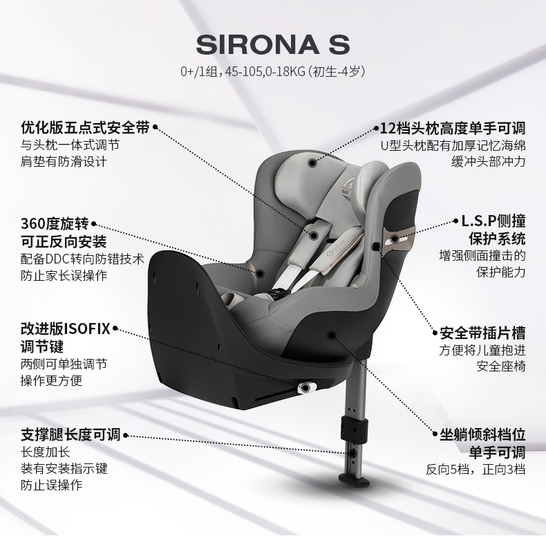 德国cybex婴儿安全座椅0-4岁Sirona S安全座椅双向坐躺isofix接口