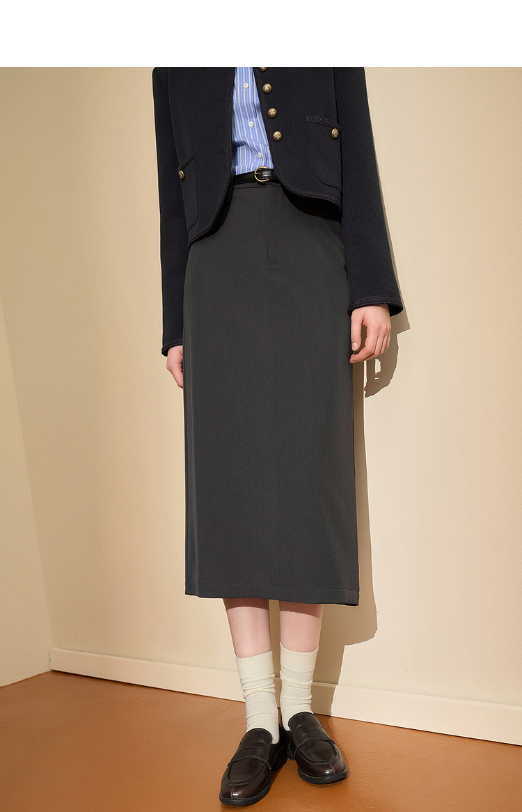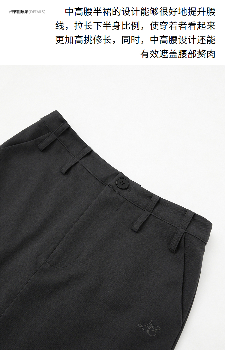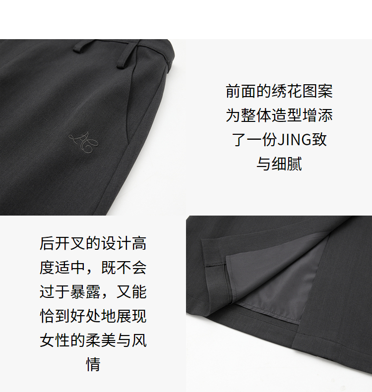辣妹工装星星绣花直筒裙女秋冬中高腰后开叉设计感半身裙V3542517