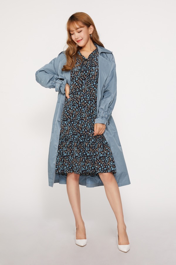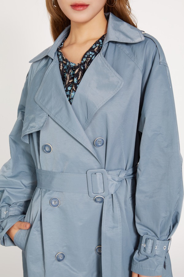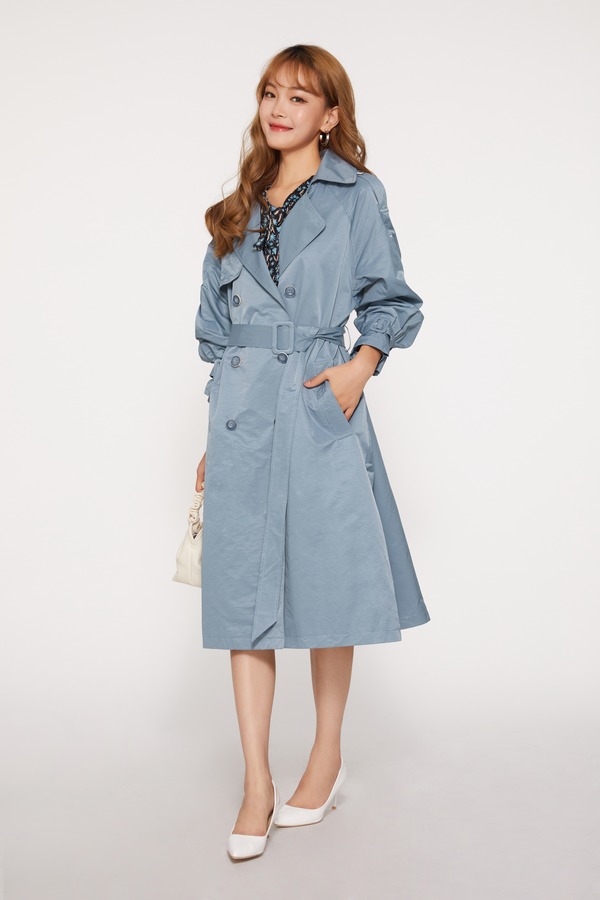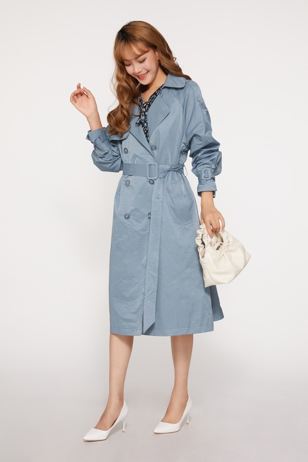 LNNNS 蓝色长款英伦风大翻领风衣 10115
