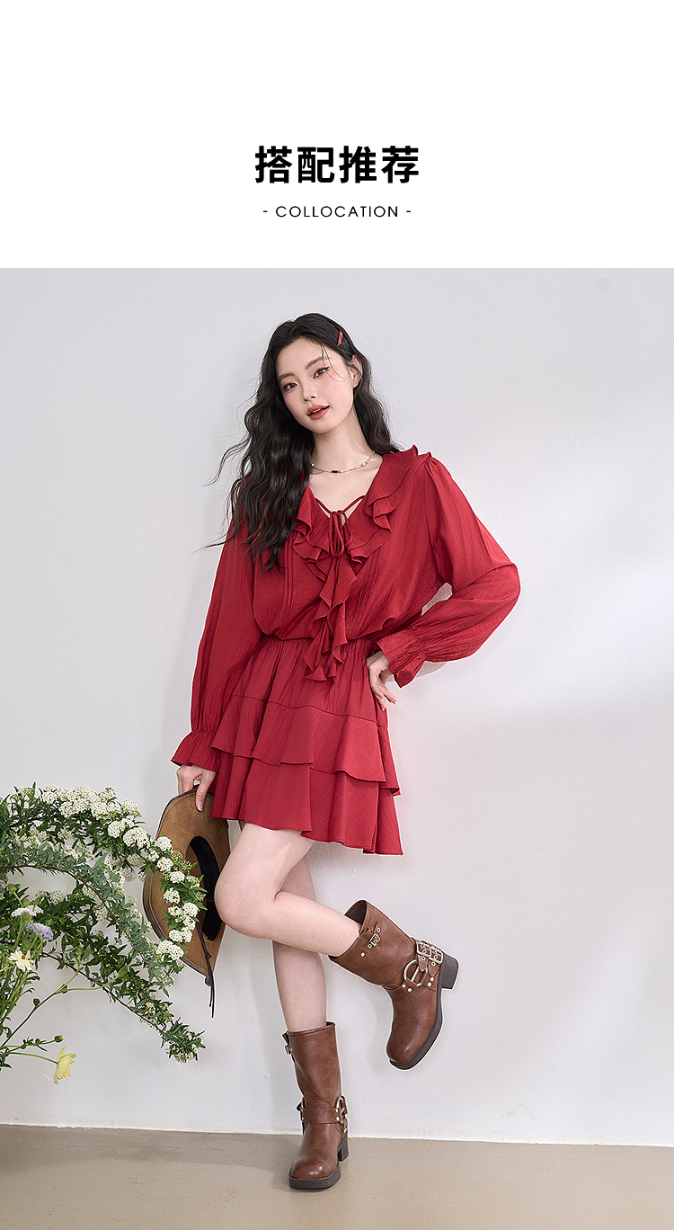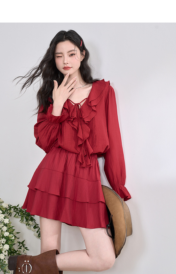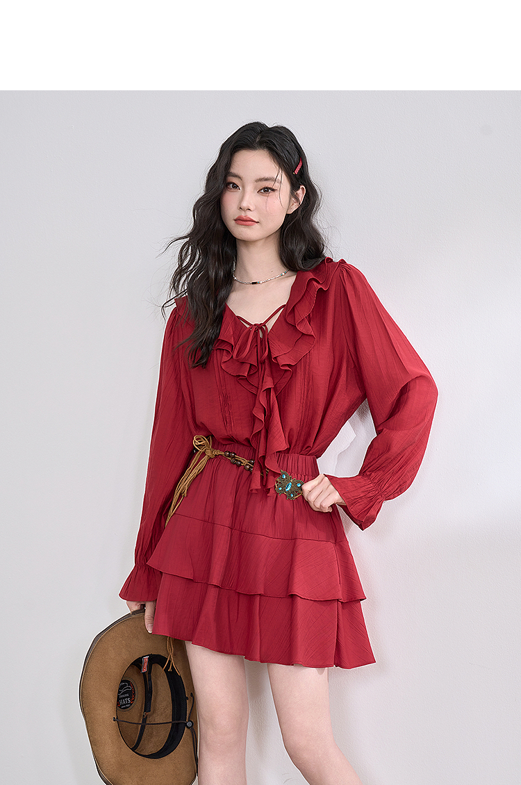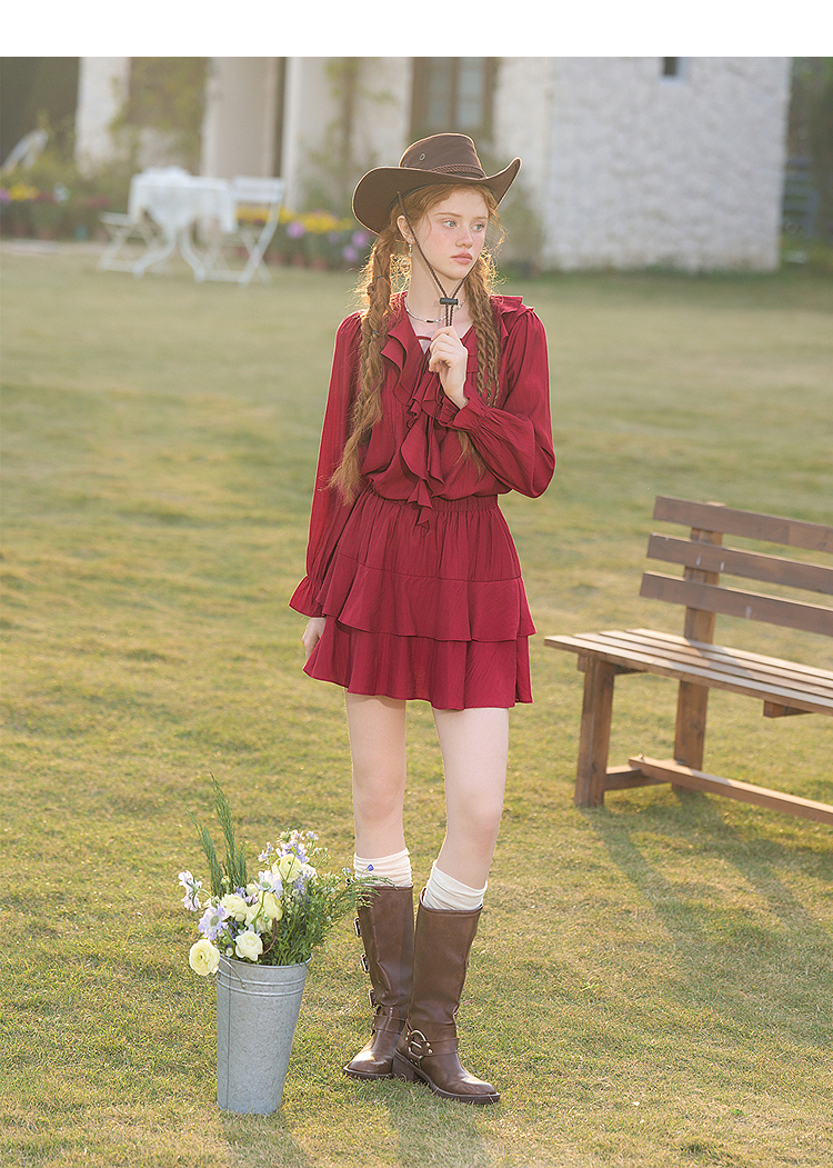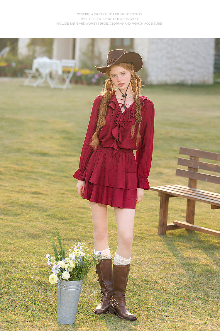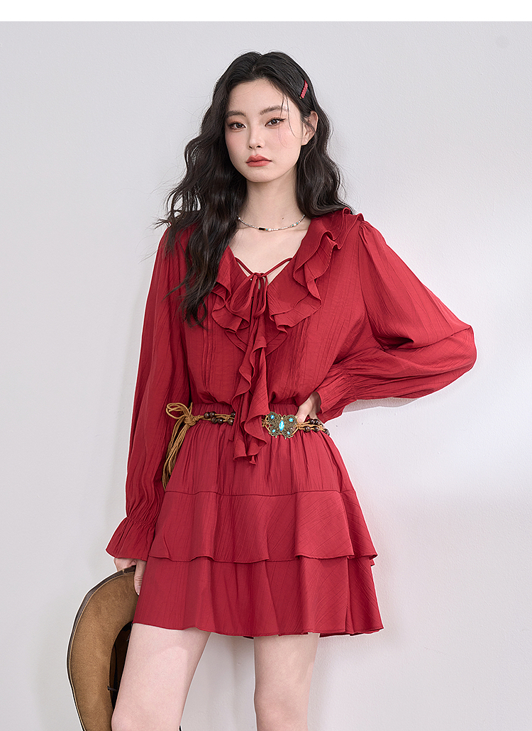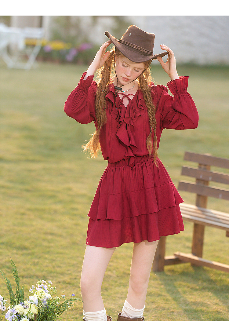 复古拼接荷叶边半身裙女短裙蛋糕裙V0450212