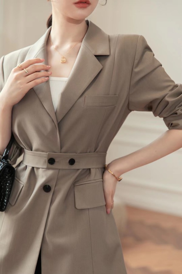 amadella 卡其色翻领简约西装外套 15552