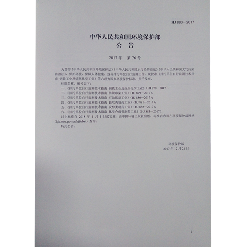 HJ883-2017 排污单位自行监测技术指南 化学合成类制药工业