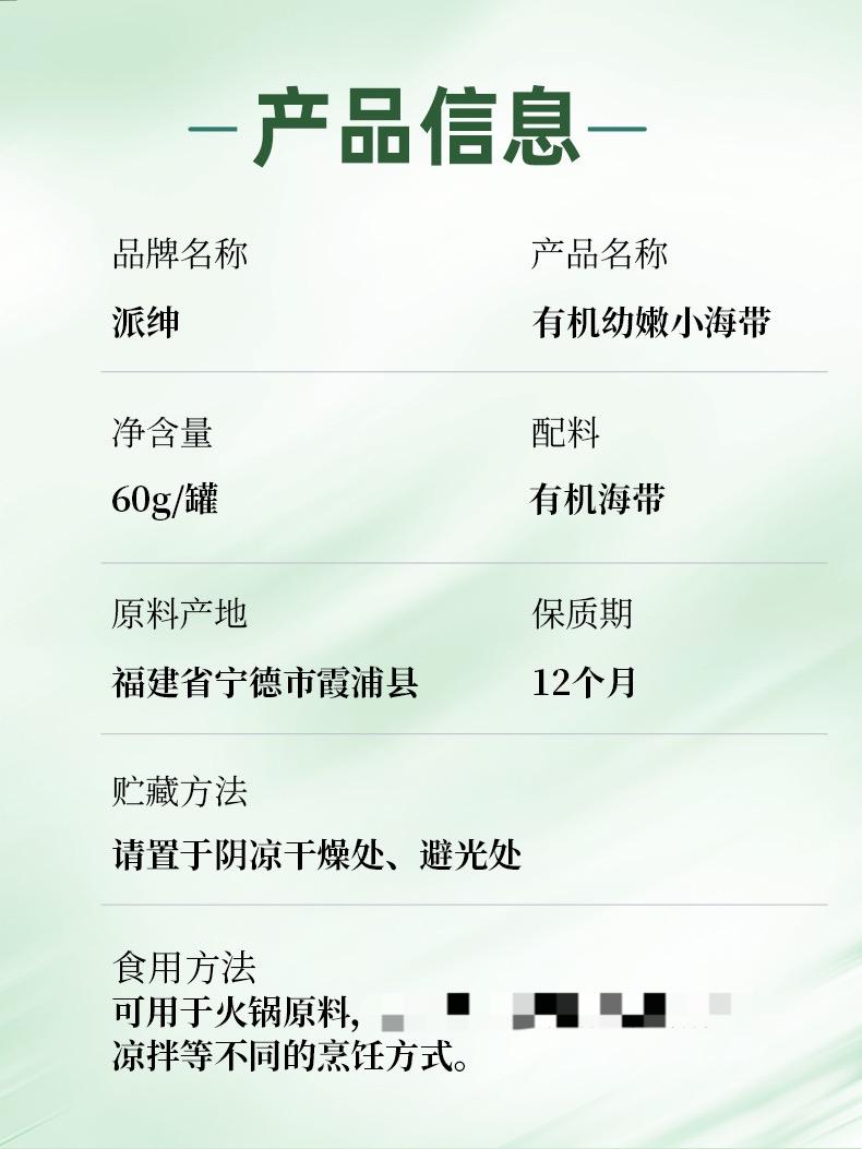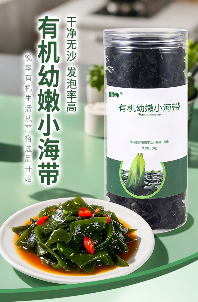 派绅有机幼嫩小海带 干货昆布霞浦海带苗凉拌免切60g/罐【京东快递送货上门】