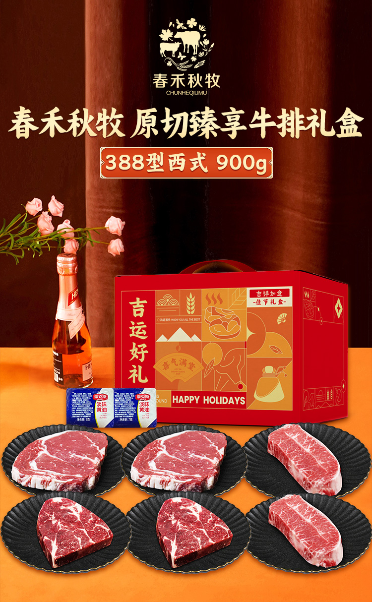 春禾秋牧原切臻享牛排礼盒900g 顺丰冷运到家