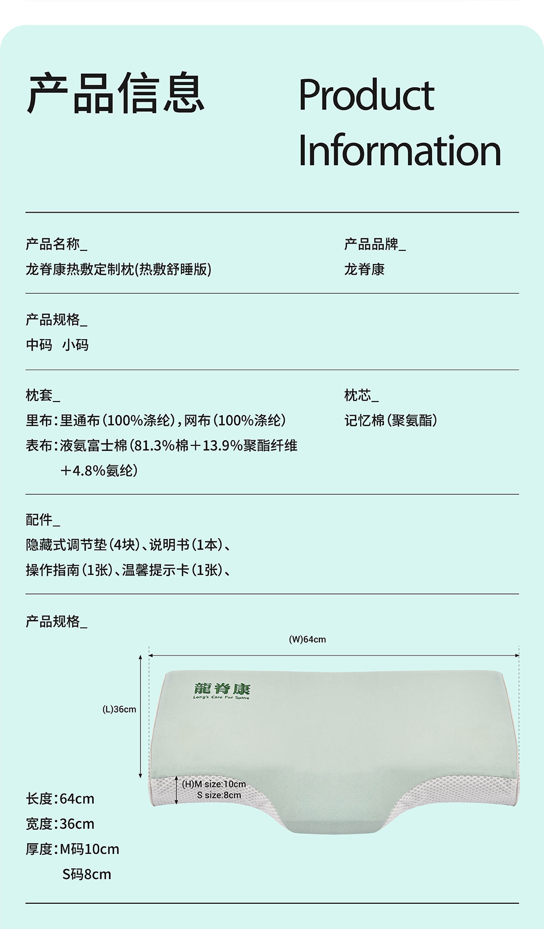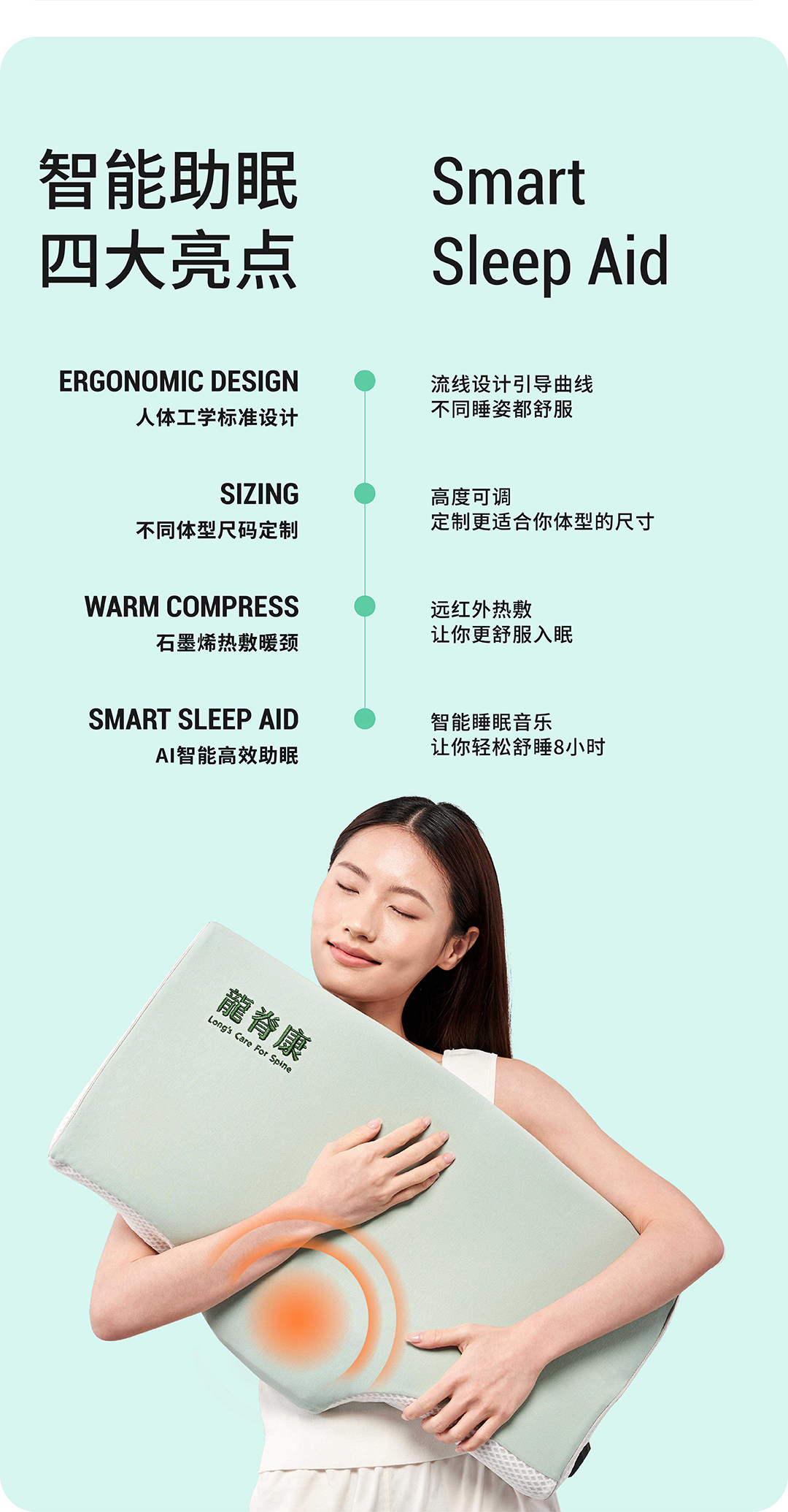 龙脊康热敷枕 秋冬季枕头护颈椎助睡眠 深睡眠三档温度调节护颈枕