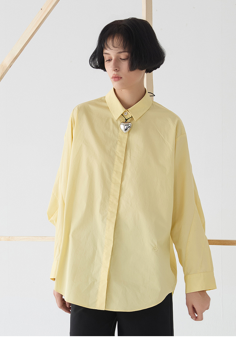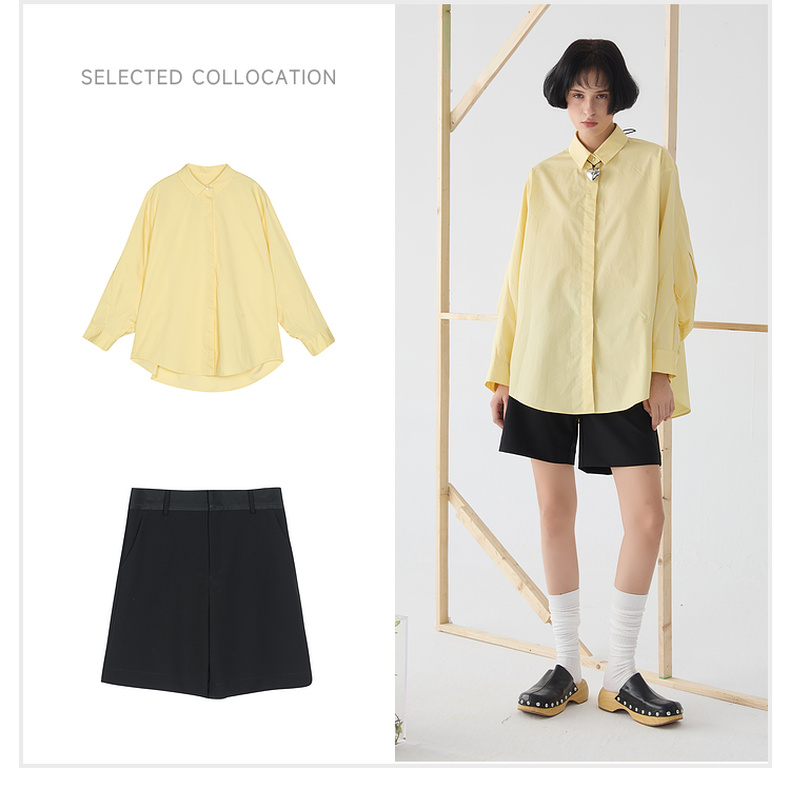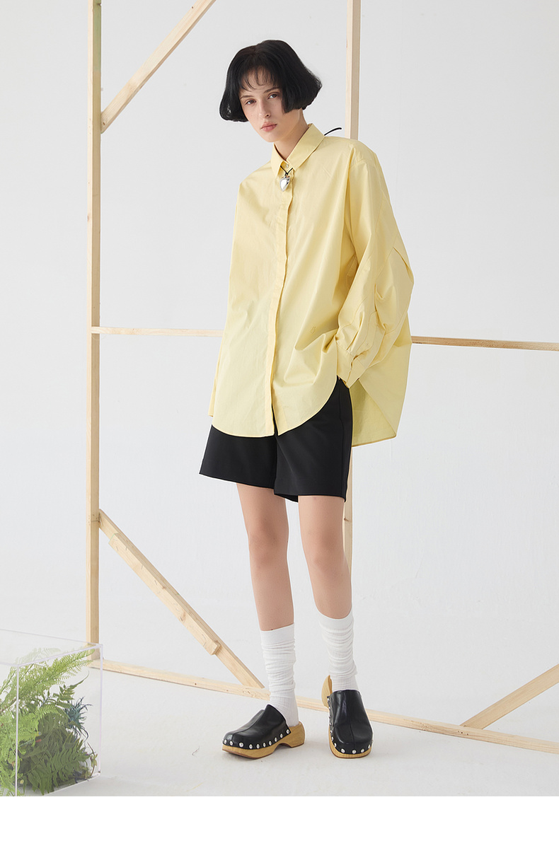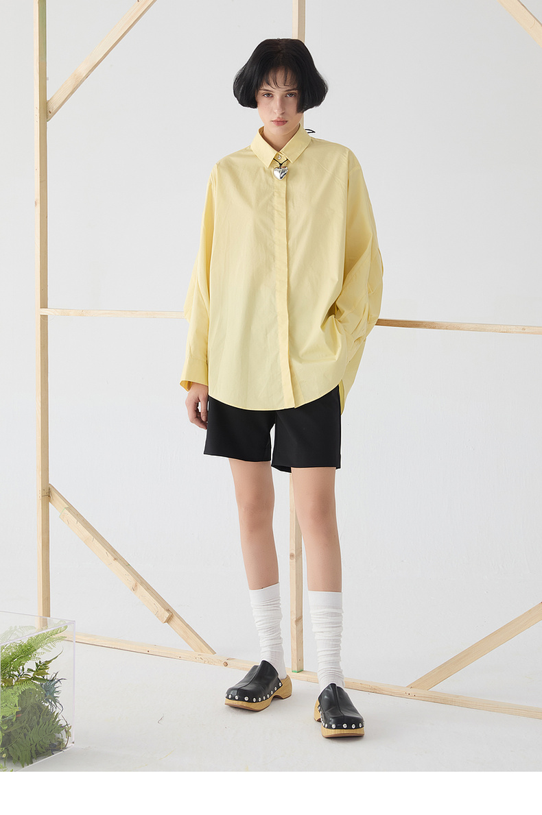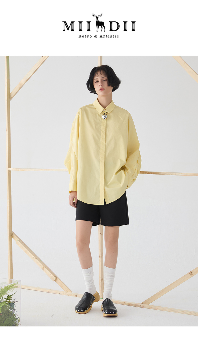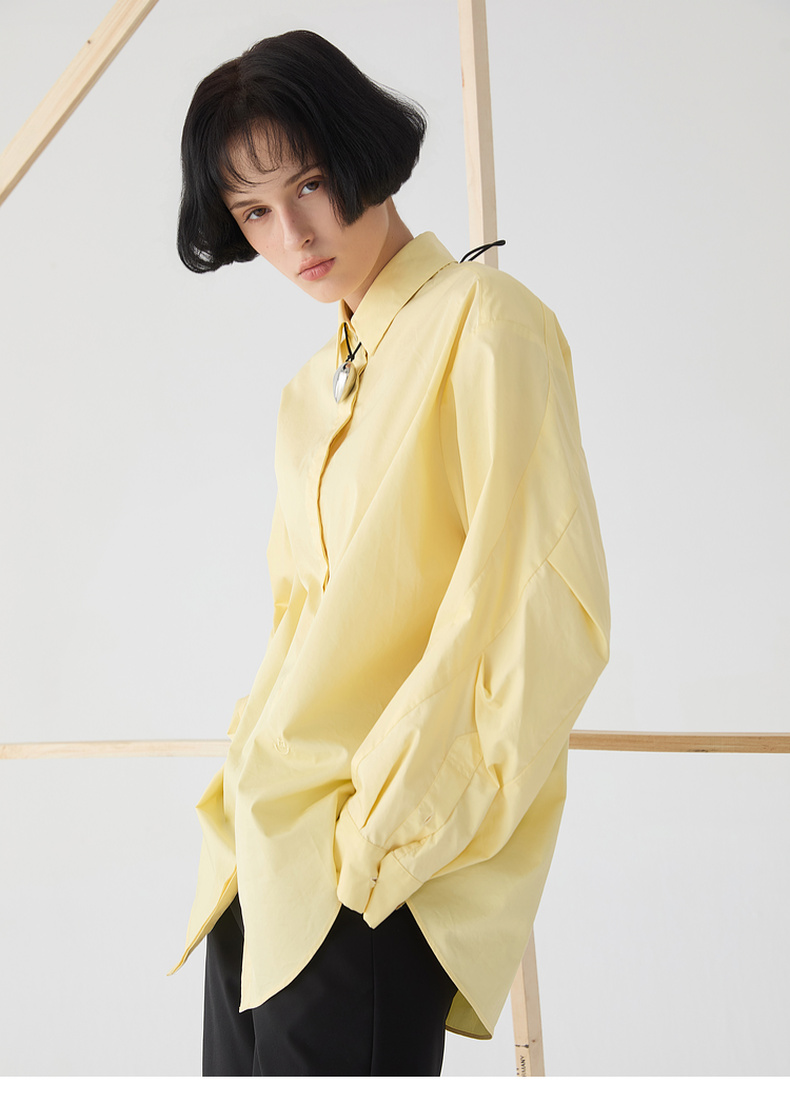 谜底大廓形衬衫长袖女2025春新品时髦纯色设计感大衬衣251MC0017