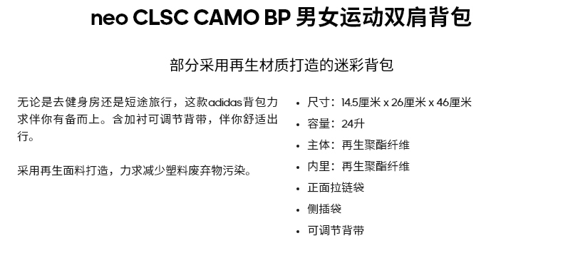 adidas阿迪达斯官网neo男女新款迷彩运动双肩背包HC4781