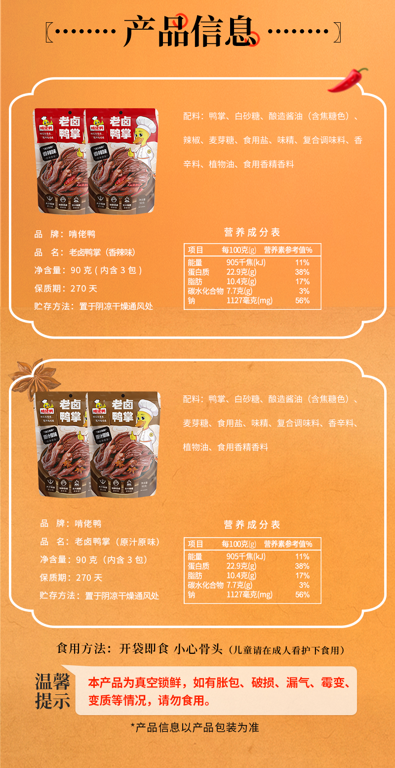 啃佬鸭老卤鸭爪鸭掌90g袋装卤味追剧解馋休闲零食真空开袋小吃江西特产