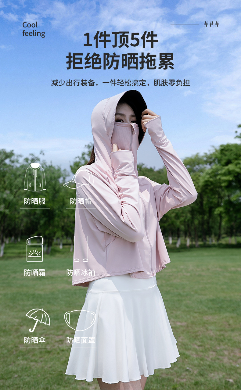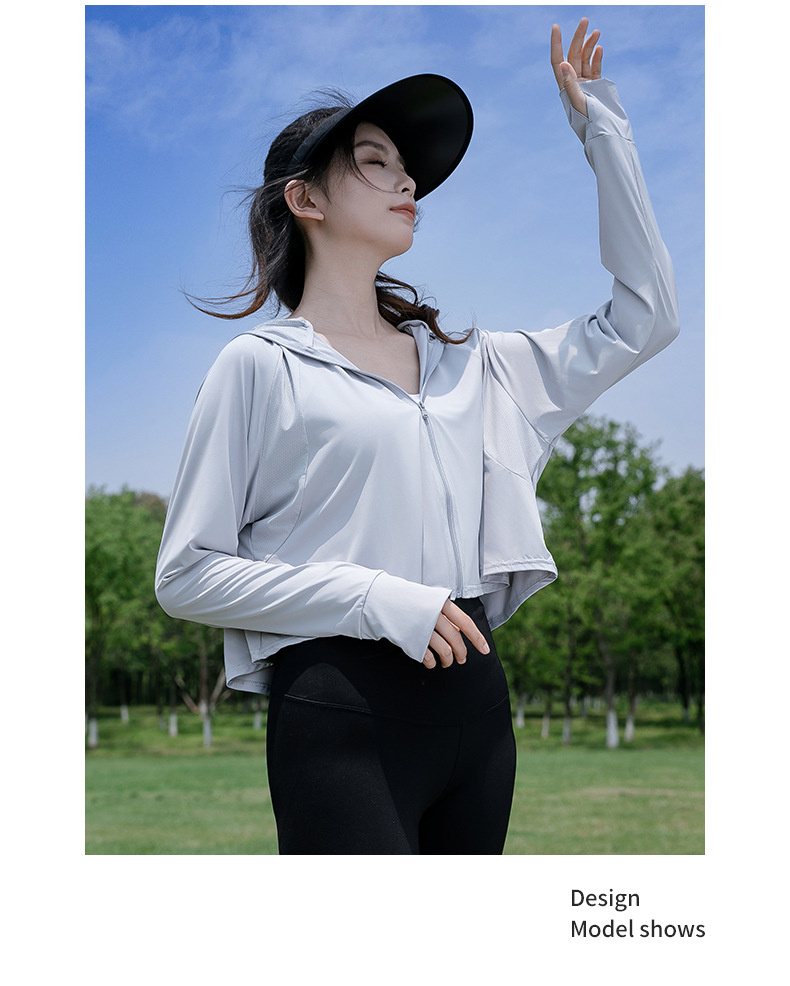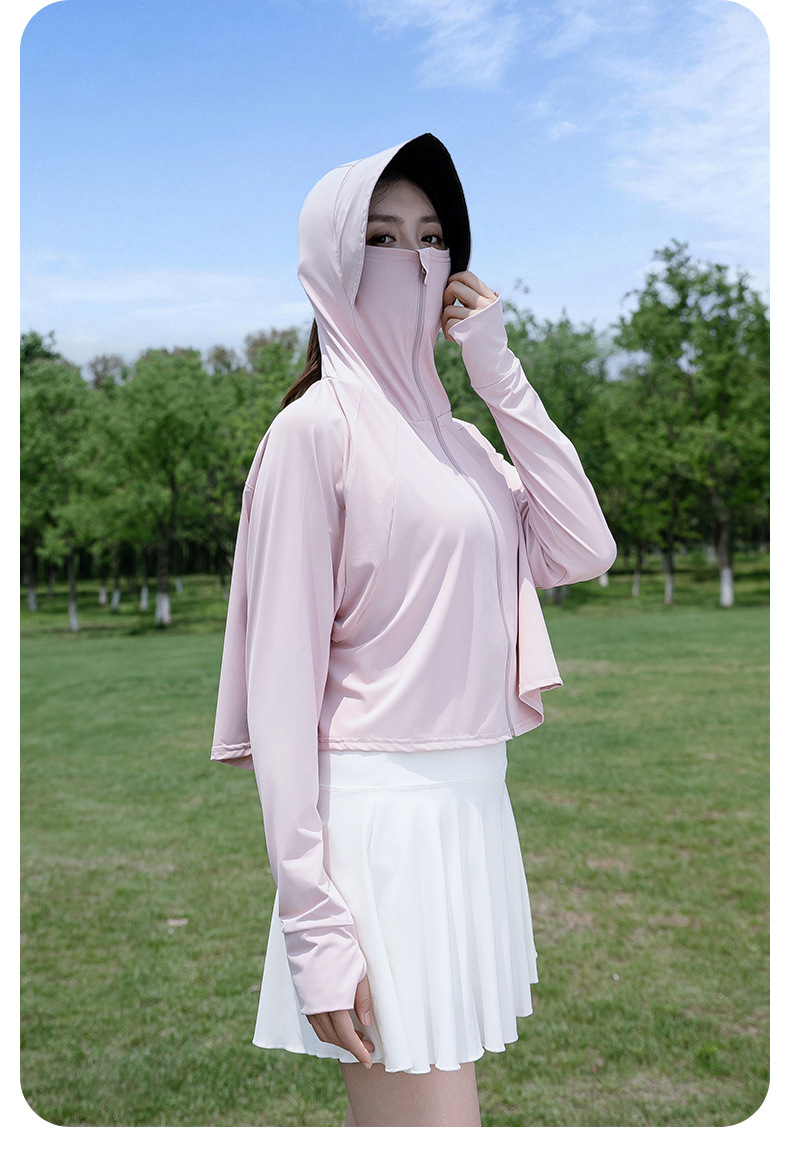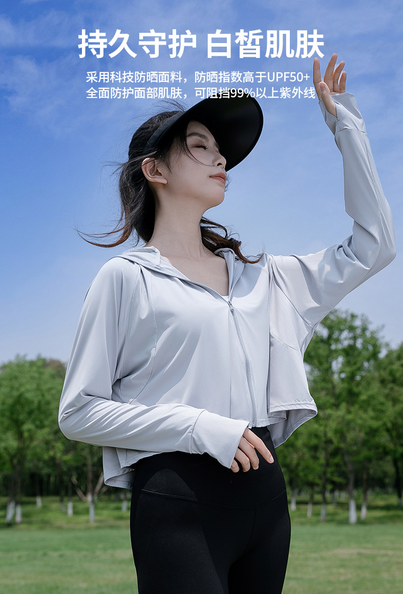 夏季防晒衣冰丝凉感女防晒服开衫防晒衫短款宽松外套薄款防紫外线
