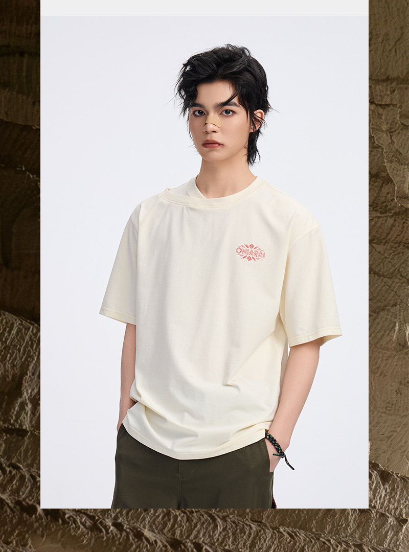 ONIARAI/鬼洗 伊南娜綉花双罗纹领Sorona休闲T恤 A840016