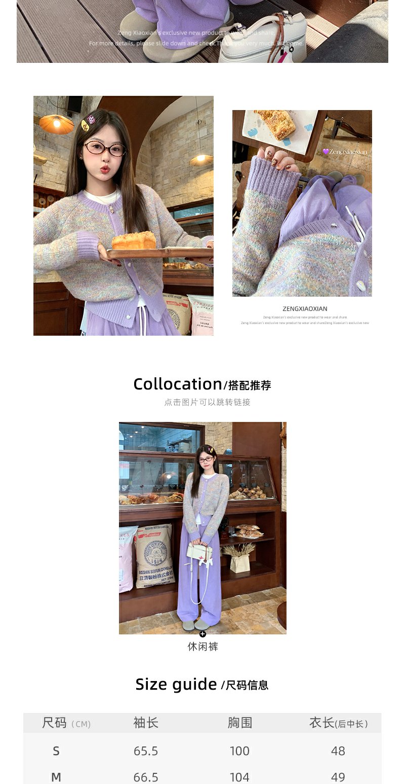 【189元任选2件】现货!紫色圆领系扣毛衣