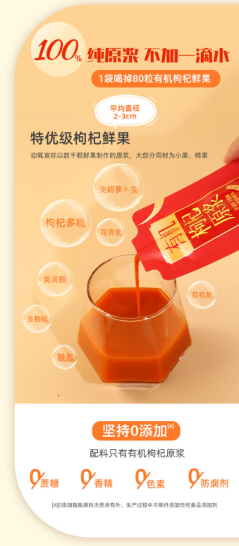 有机枸杞原浆 非浓缩还原300ml(30ml*10袋)/盒【京东快递送货上门】