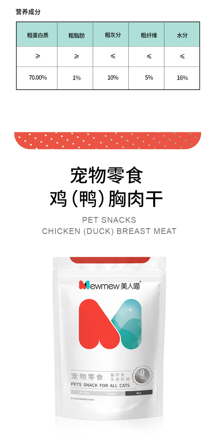 美人喵 鸡胸肉鸭胸肉干 50g 猫咪零食宠物零食