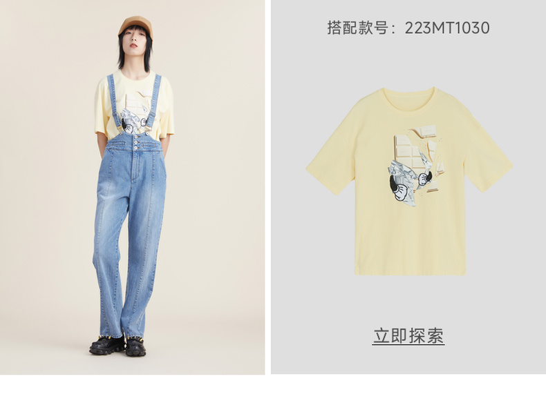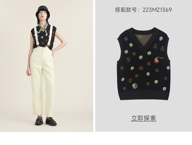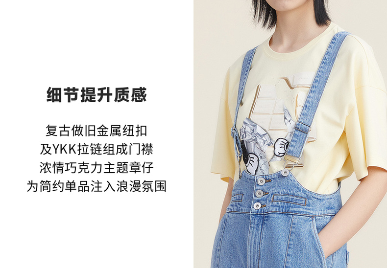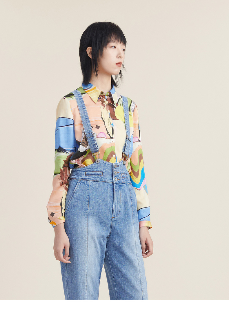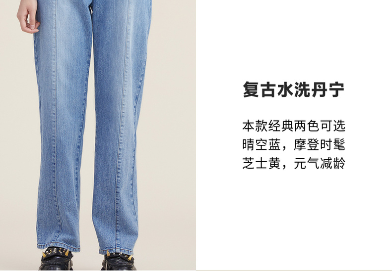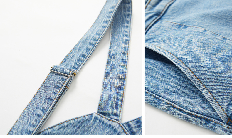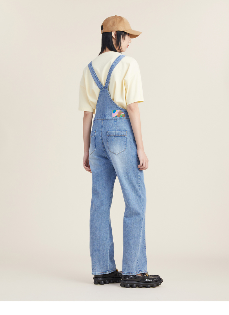 谜底2022秋新品复古洗水磨白高腰可拆卸背带牛仔裤女223MK1017