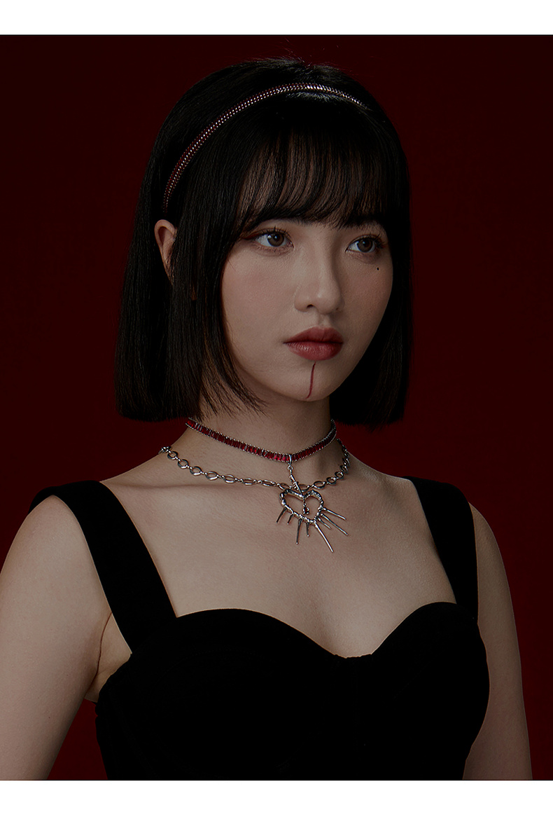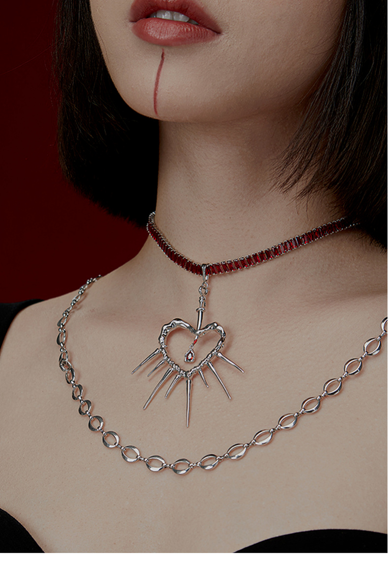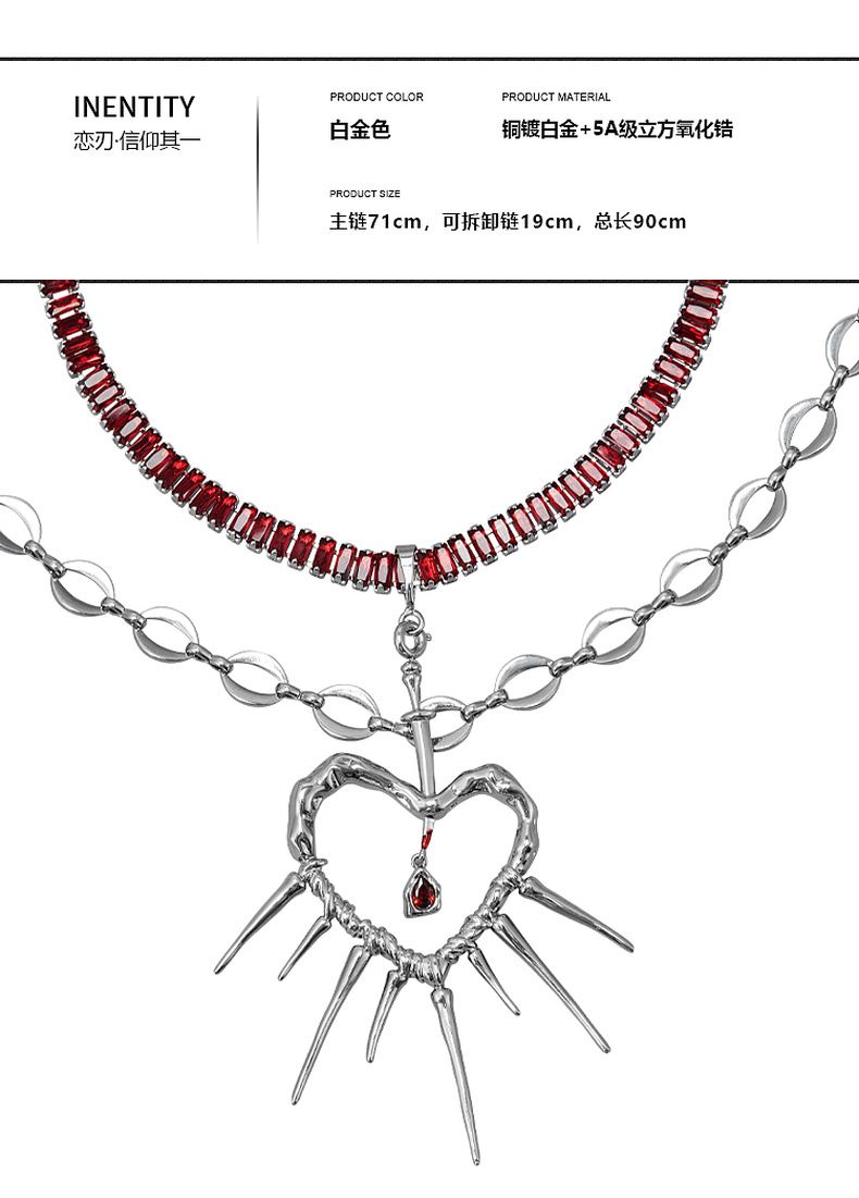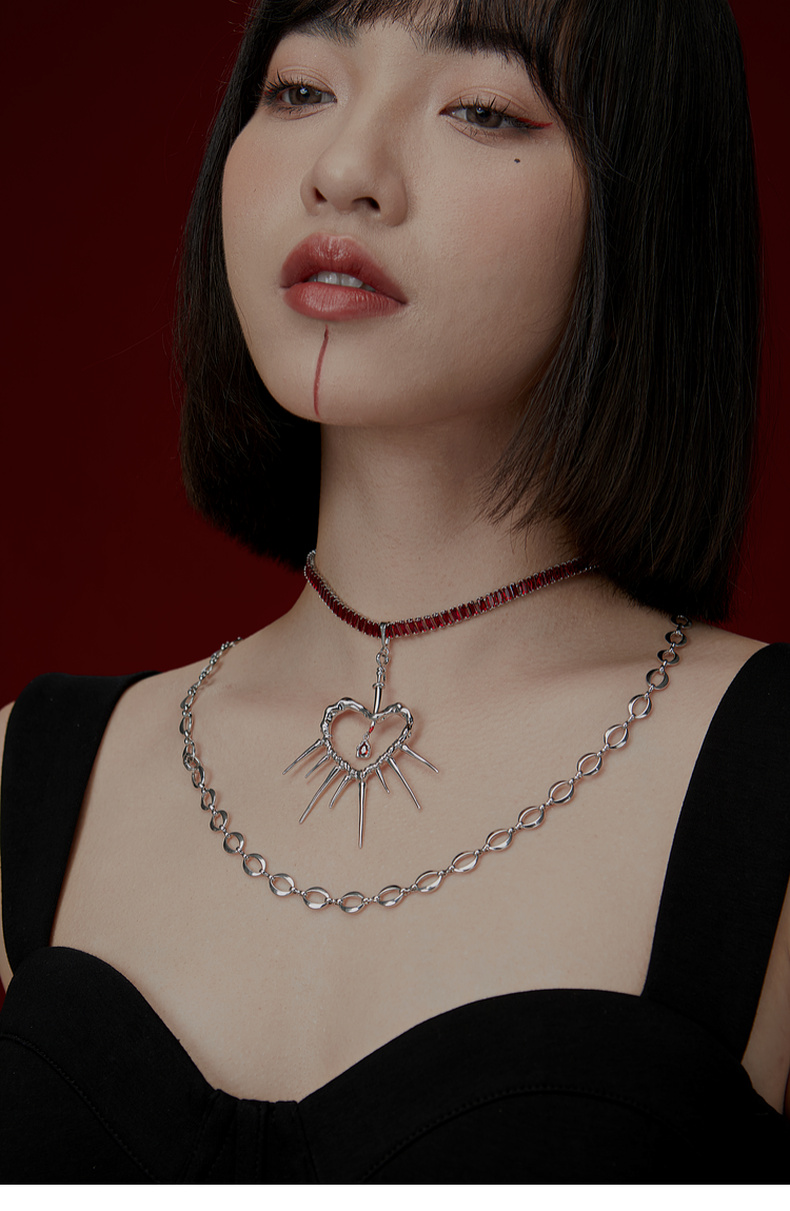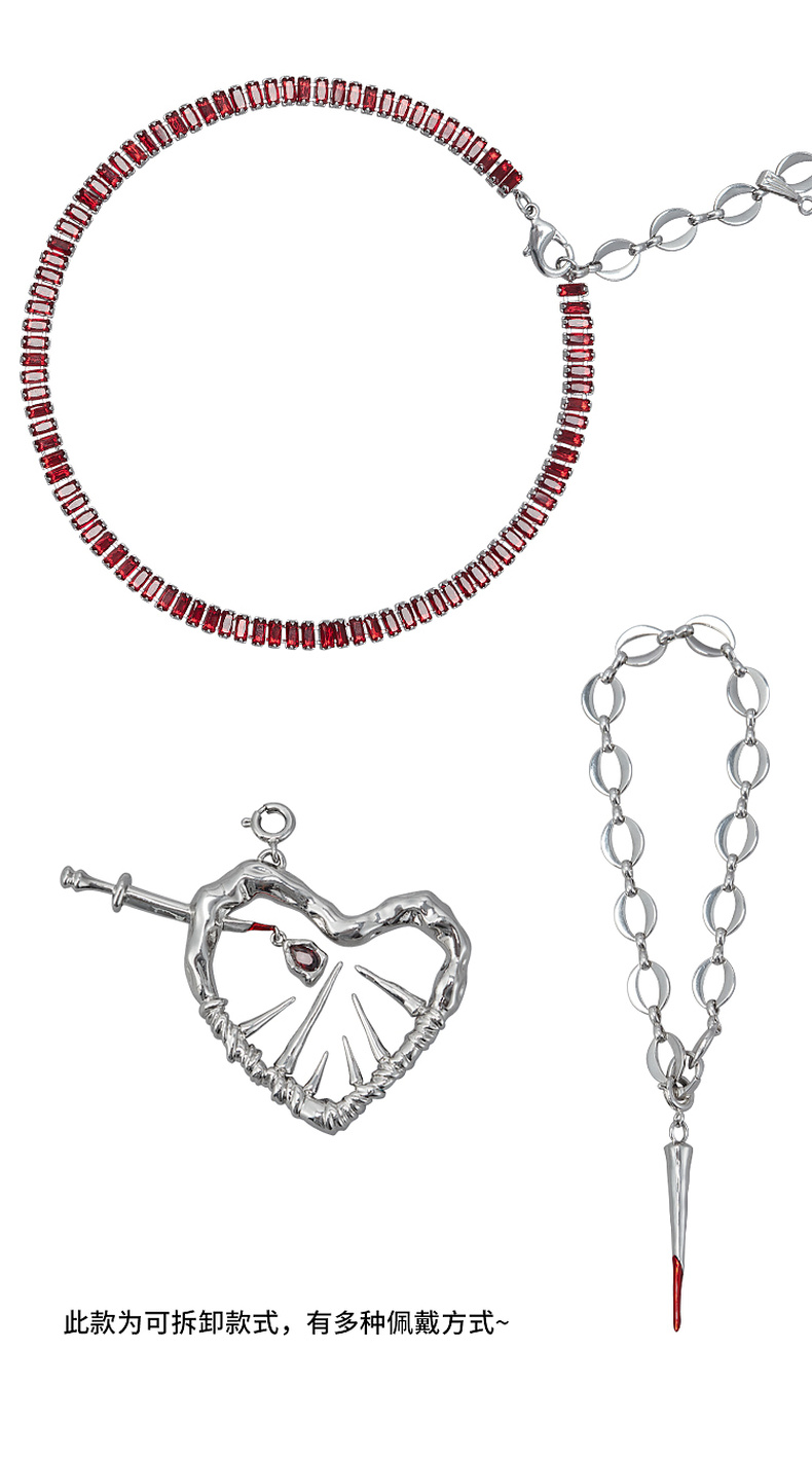 个性夸张爱心项链女组装拼接链条轻奢暗黑系原创锁骨链吊坠可拆卸221YX0020