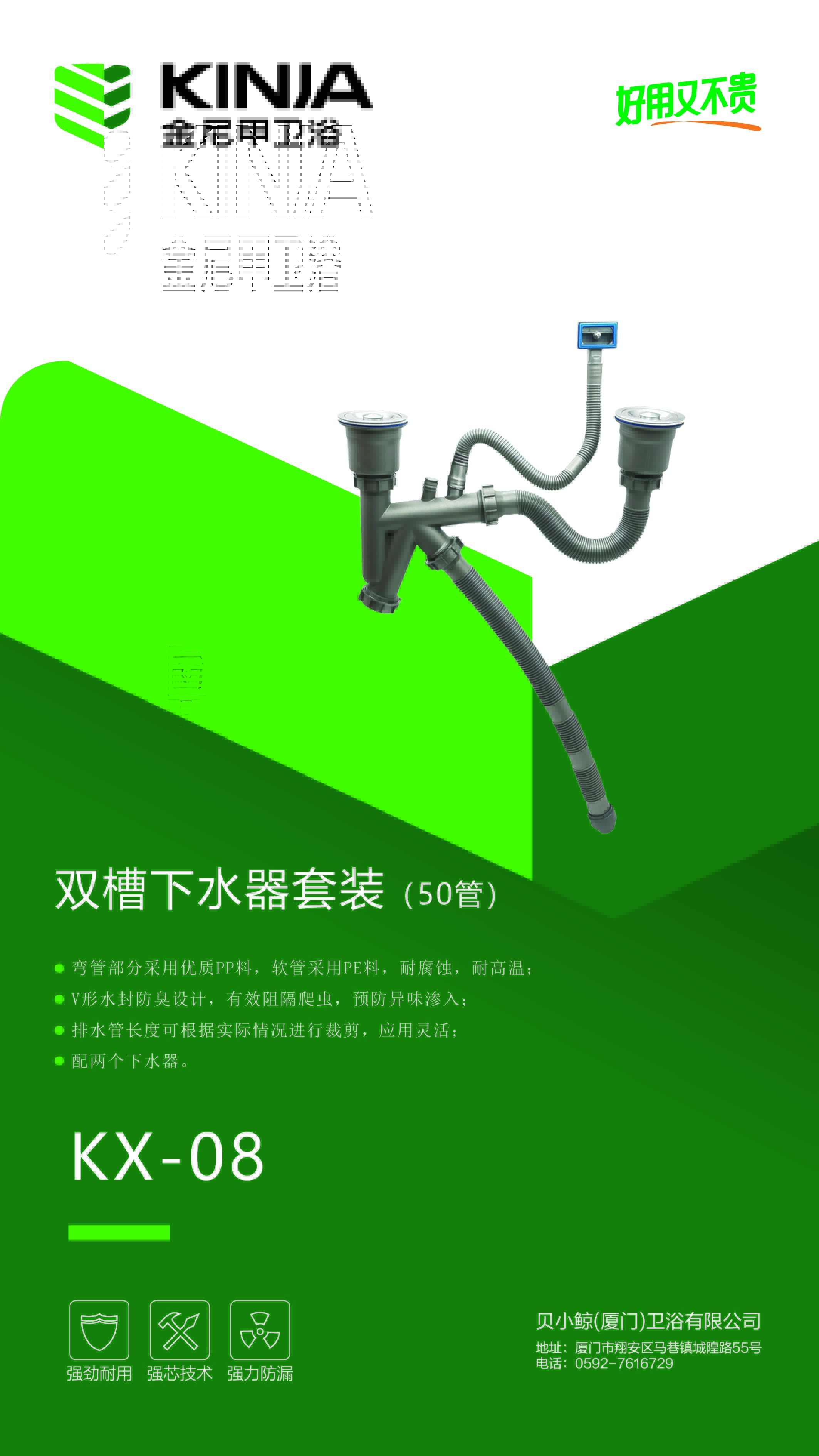 KX-08/双槽下水器套装/2水槽下水器+50管+溢水管/拉丝