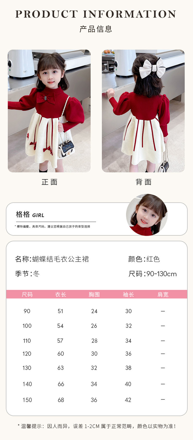 【品名】俏墨秋冬女童公主连衣裙