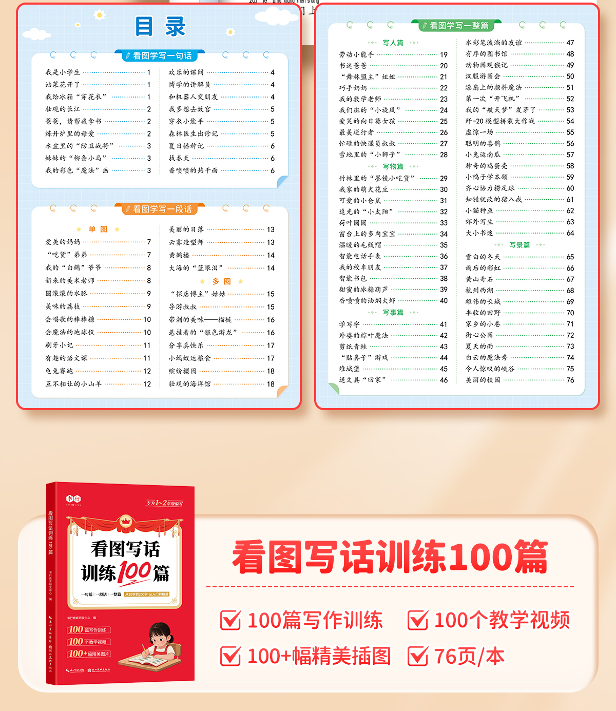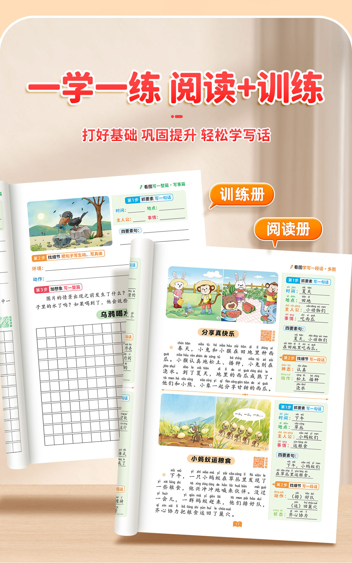看图写话[阅读+训练]100篇一二年级日记积累优美范文作文素材AI伴读训练