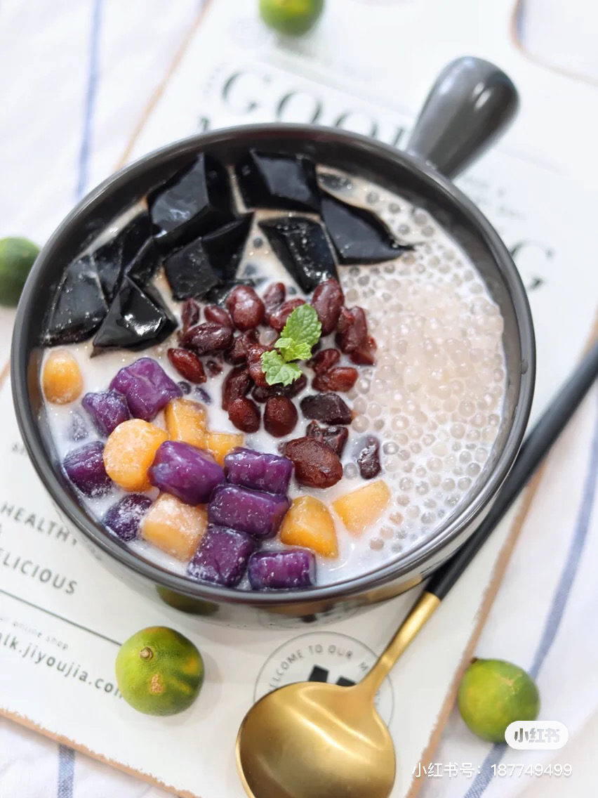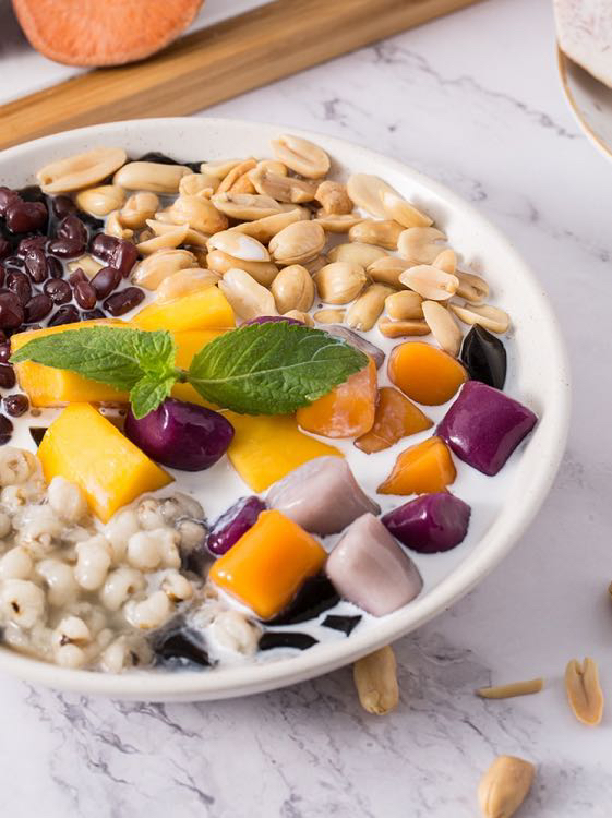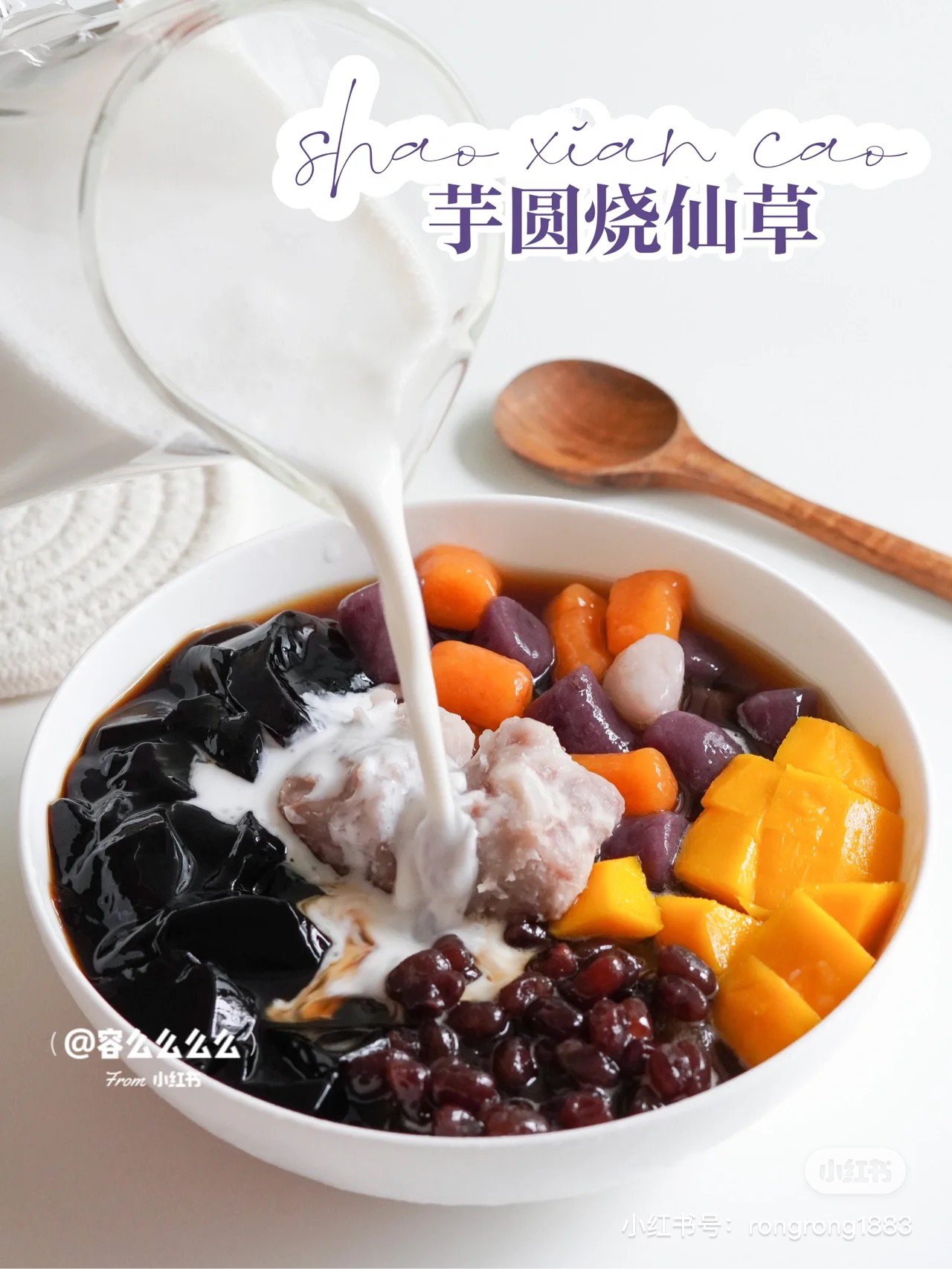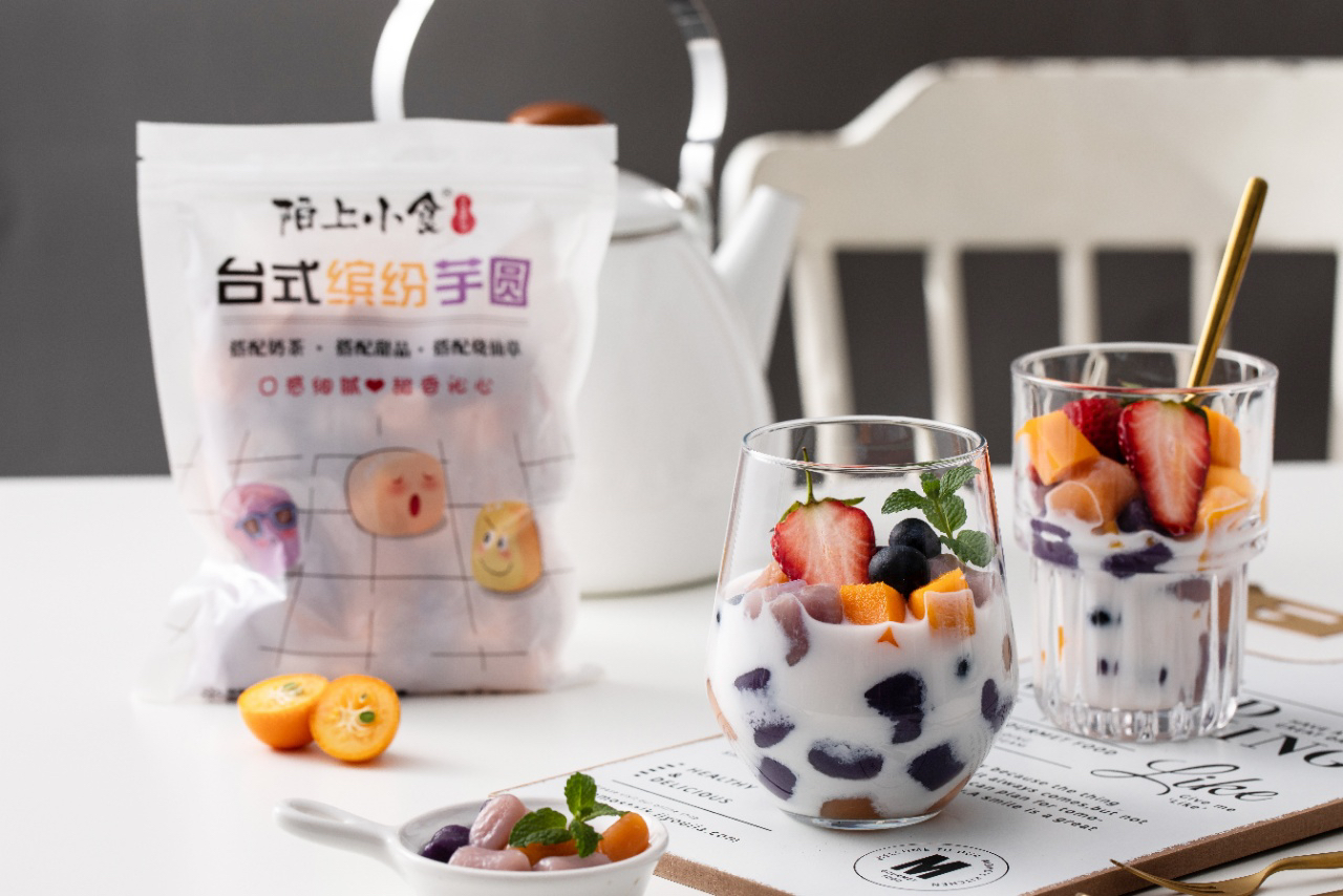迎接日夏的甜品!嚼来起劲道弹牙,带着甜糯香气芋的圆,搭配料辅不同😄可变身多品个种的甜品!不添加香精色和素防腐剂,每粒芋圆能都清晰地看到食材原本纤的维,三口种味❗完搭美配💋