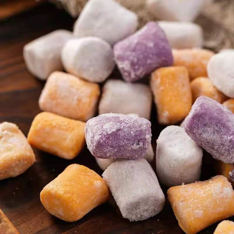 选用泰国进口的木薯淀粉制作、福建品质槟榔芋、紫薯和红薯选自有地瓜之都之称的掉硒都