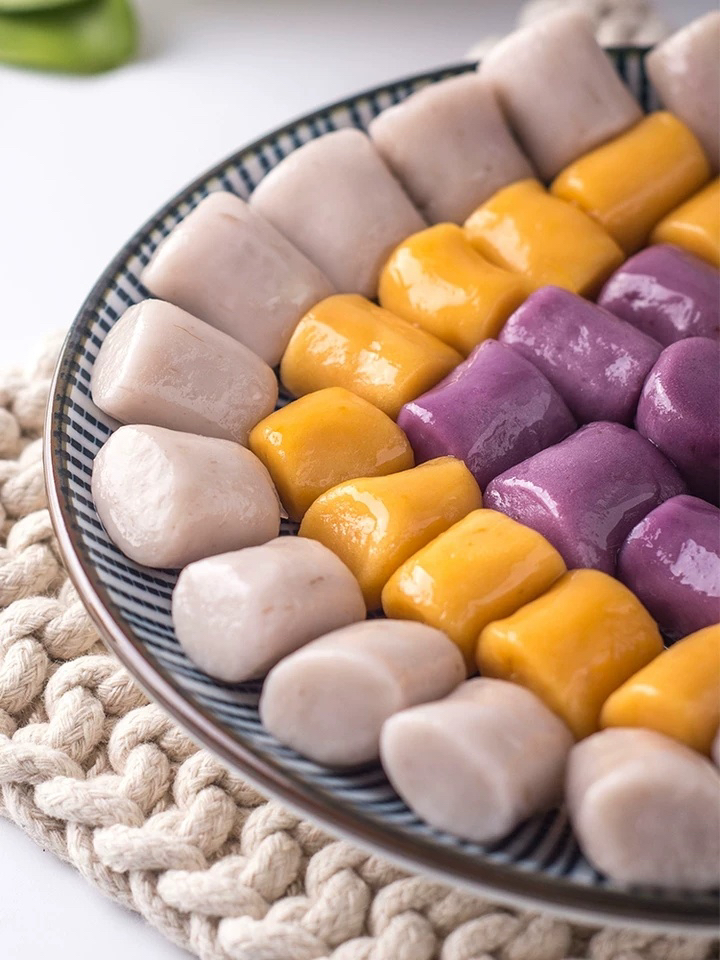 芋圆🉑由香芋、红薯、紫薯等材料制作