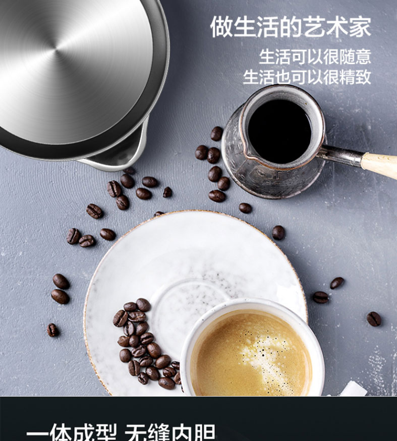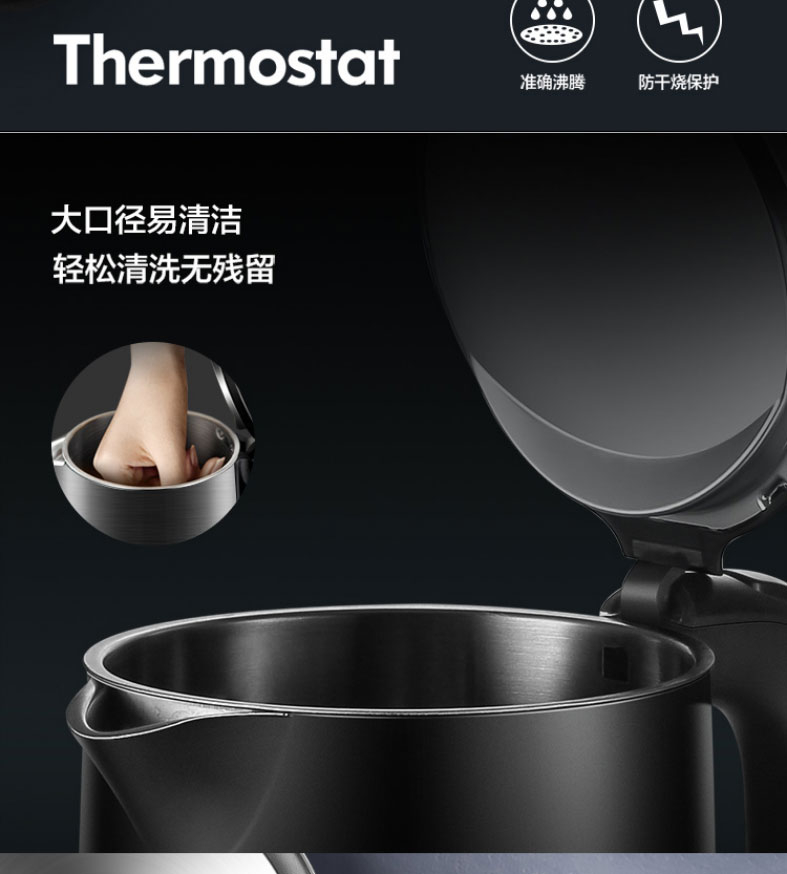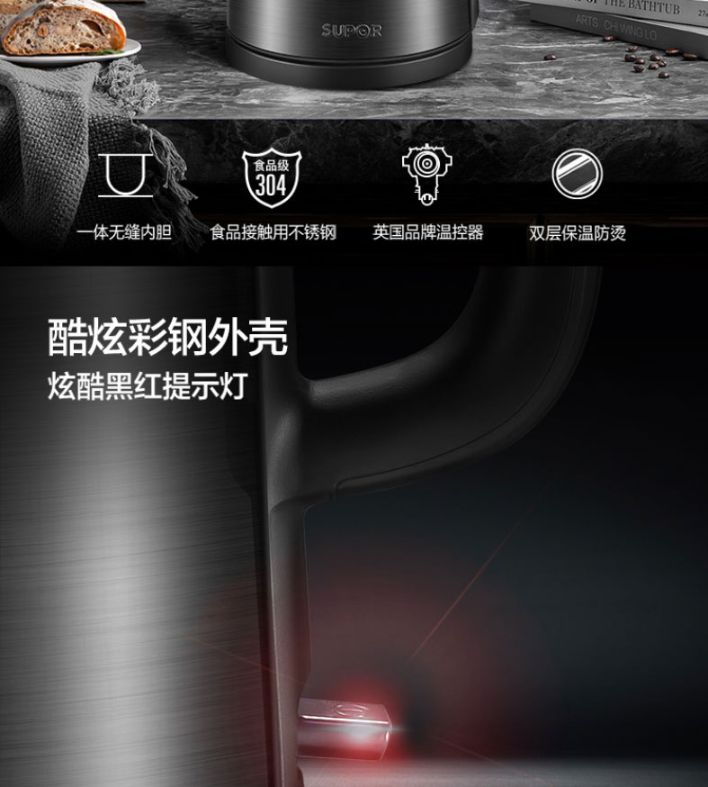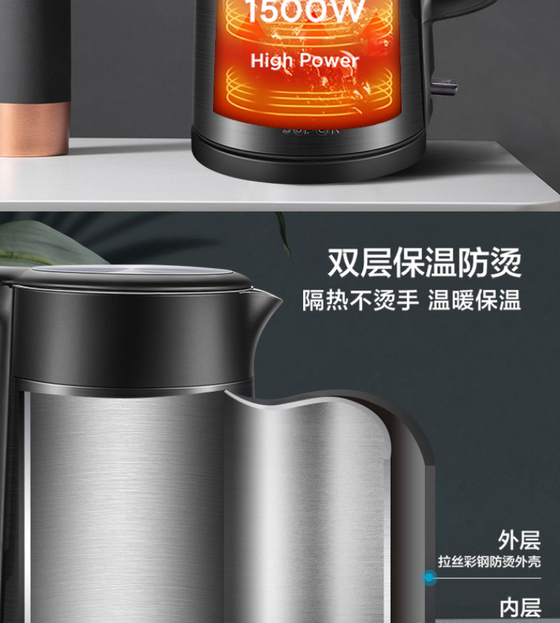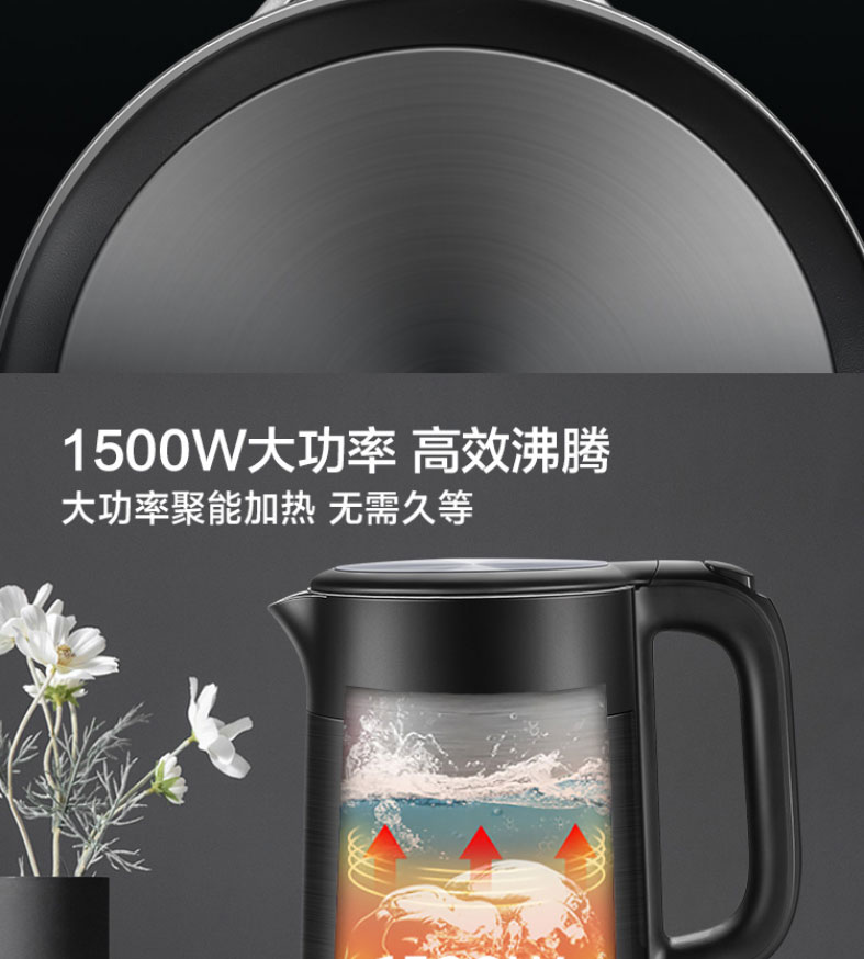 苏泊尔1.7L大容量 ZMD安心系列 酷炫双钢机身 双层无缝内胆 电水壶17S32A