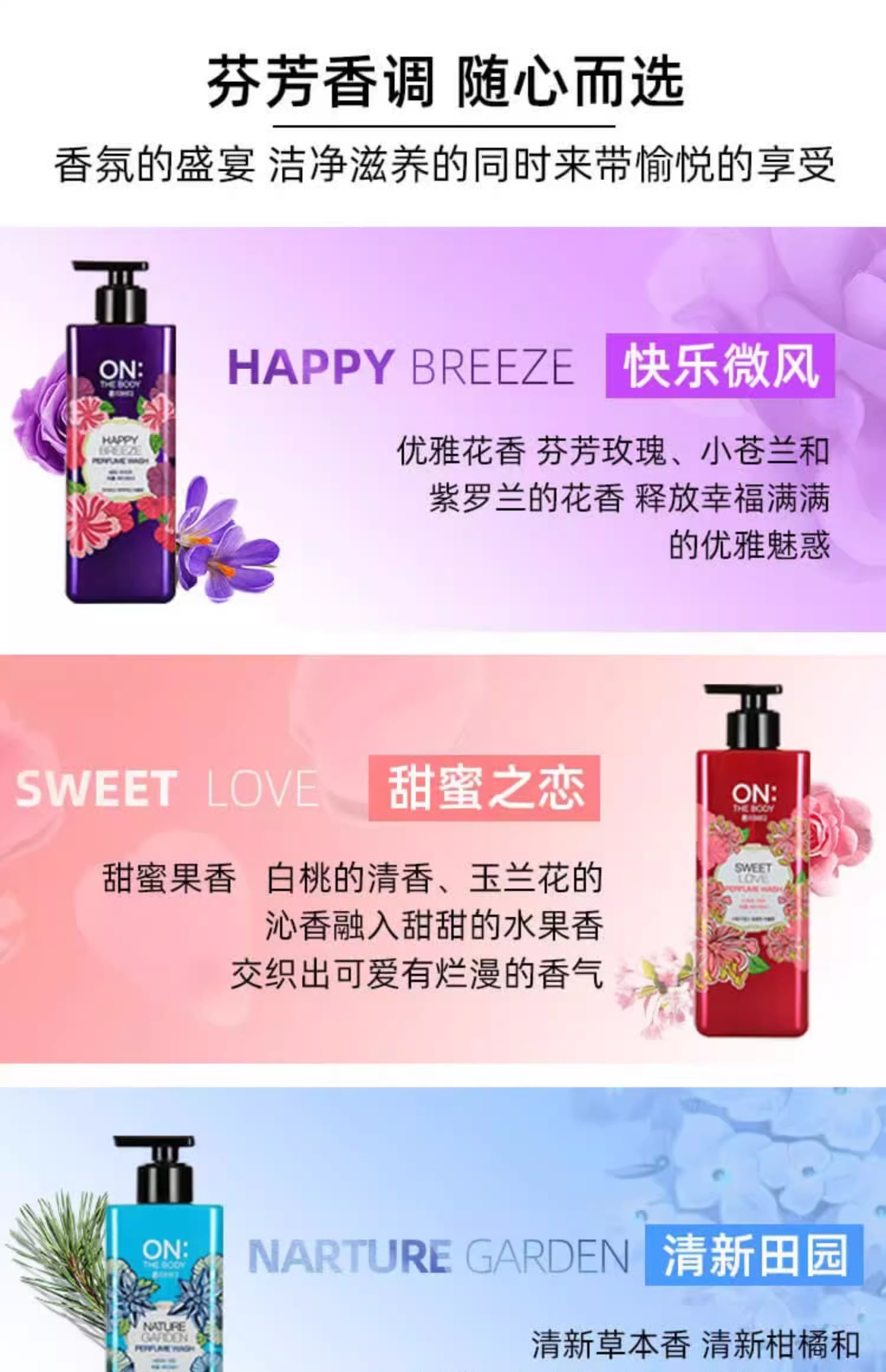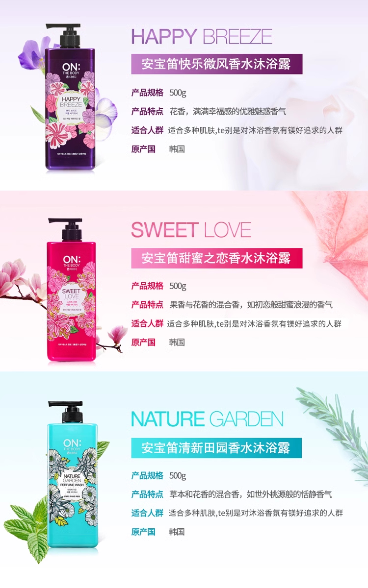 【中欧班列】韩国进口LG安宝迪on香水花香沐浴露500ml/瓶