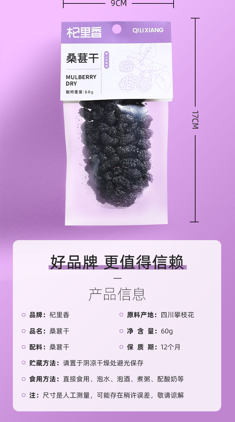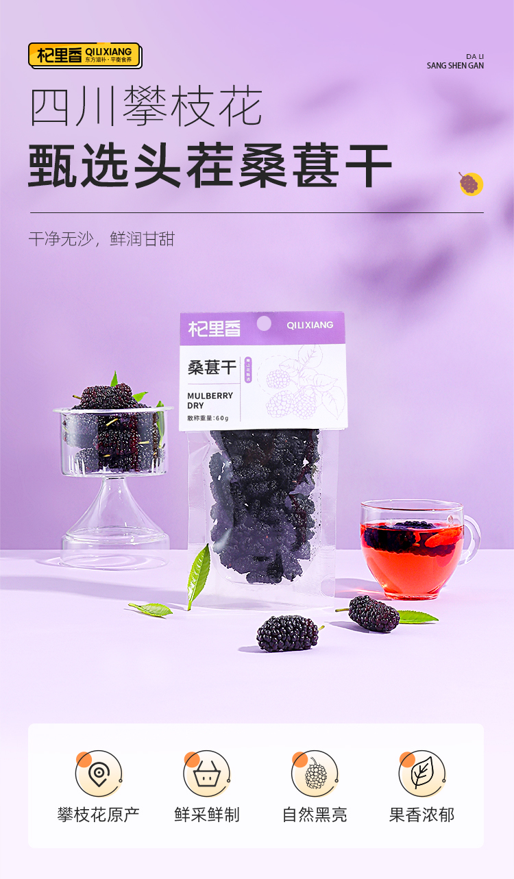 【杞里香60g袋装桑葚干】含花青素泡茶泡酒非免洗即食桑葚旗舰店 自然生长 口感软甜 干净无沙