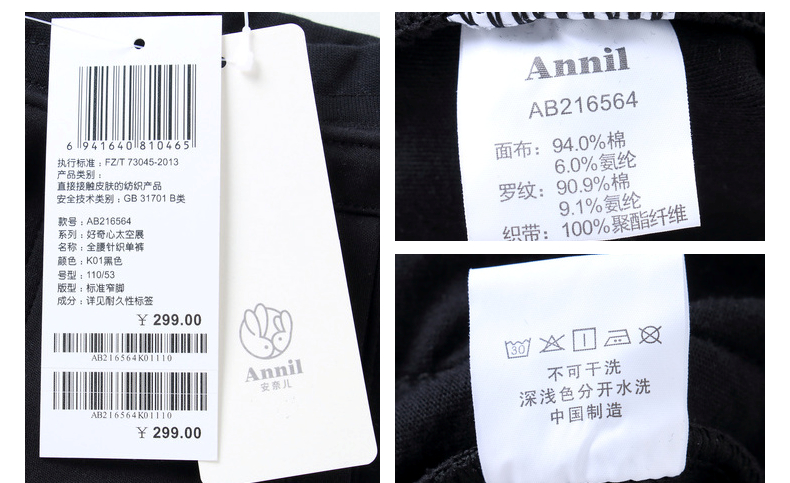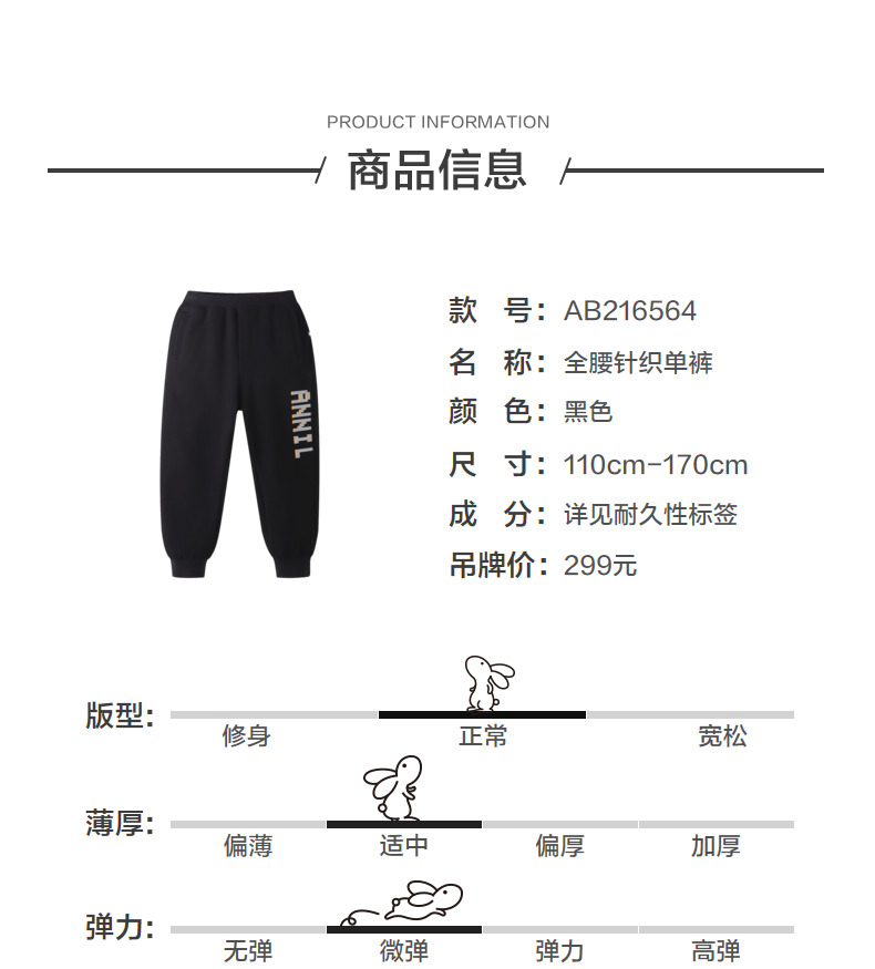 安奈儿男童全腰针织单裤ab216564