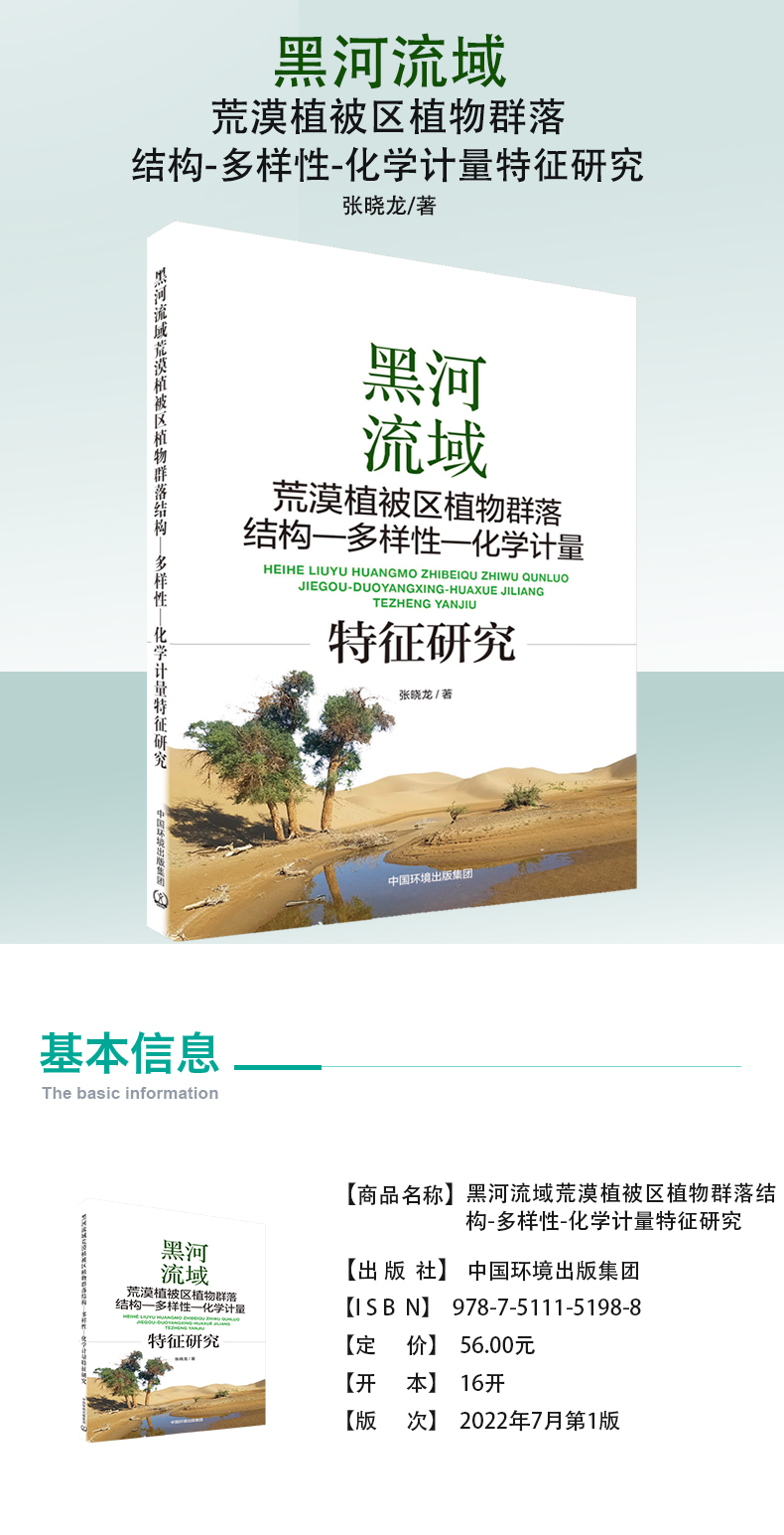 本书根据野外大量植物群落调查和土壤样品采集和测定数据,在戈壁荒漠区域降水尺度和荒漠河岸林局地沿河尺度上,揭示干旱区内陆河流域荒漠植被区植物群落结构、多样性特征及其影响因素。从生态化学计量学角度出发,分析干旱区内陆河流域荒漠植被区植物群落叶片化学计量特征及其与环境因子的关系,旨在为干旱区内陆河流域的植被管理和生态恢复提供理论依据和数据支持。
